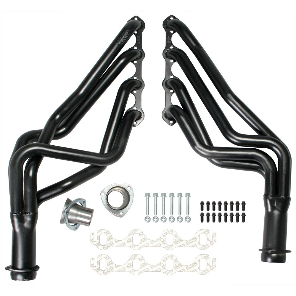 1964-73 MUSTANG 260-302 (factory 351W); 1966-73 FALCON, COUGAR, MAVERICK, RANCHERO, COMET, FAIRLANE, MONTEGO, TORINO; 260-302W; 1-5/8 in. LONG TUBE DESIGN; 3 in. BALL COLLECTOR- STANDARD-DUTY UNCOATED