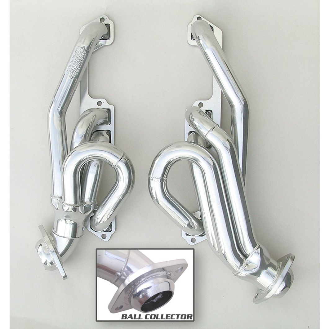 1996-03 Dodge Pickup, Durango, Dakota Headers; 5.2L/5.9L V8; 2WD and 4WD; 1-1/2 in. Short Tube; Stock Collector- HTC, Polished-Silver Ceramic-Metallic Coated, Mild Steel