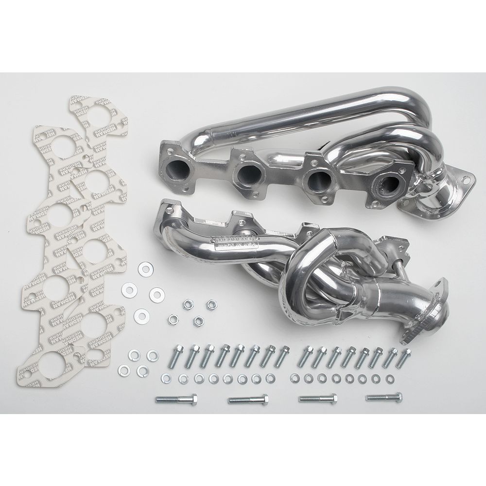 2000-02 Dodge Pickup, Durango, Dakota Headers; 4.7L V8; 2WD and 4WD; 1-1/2 in. Short Tube; Stock Collector- HTC, Polished-Silver Ceramic-Metallic Coated, Mild Steel