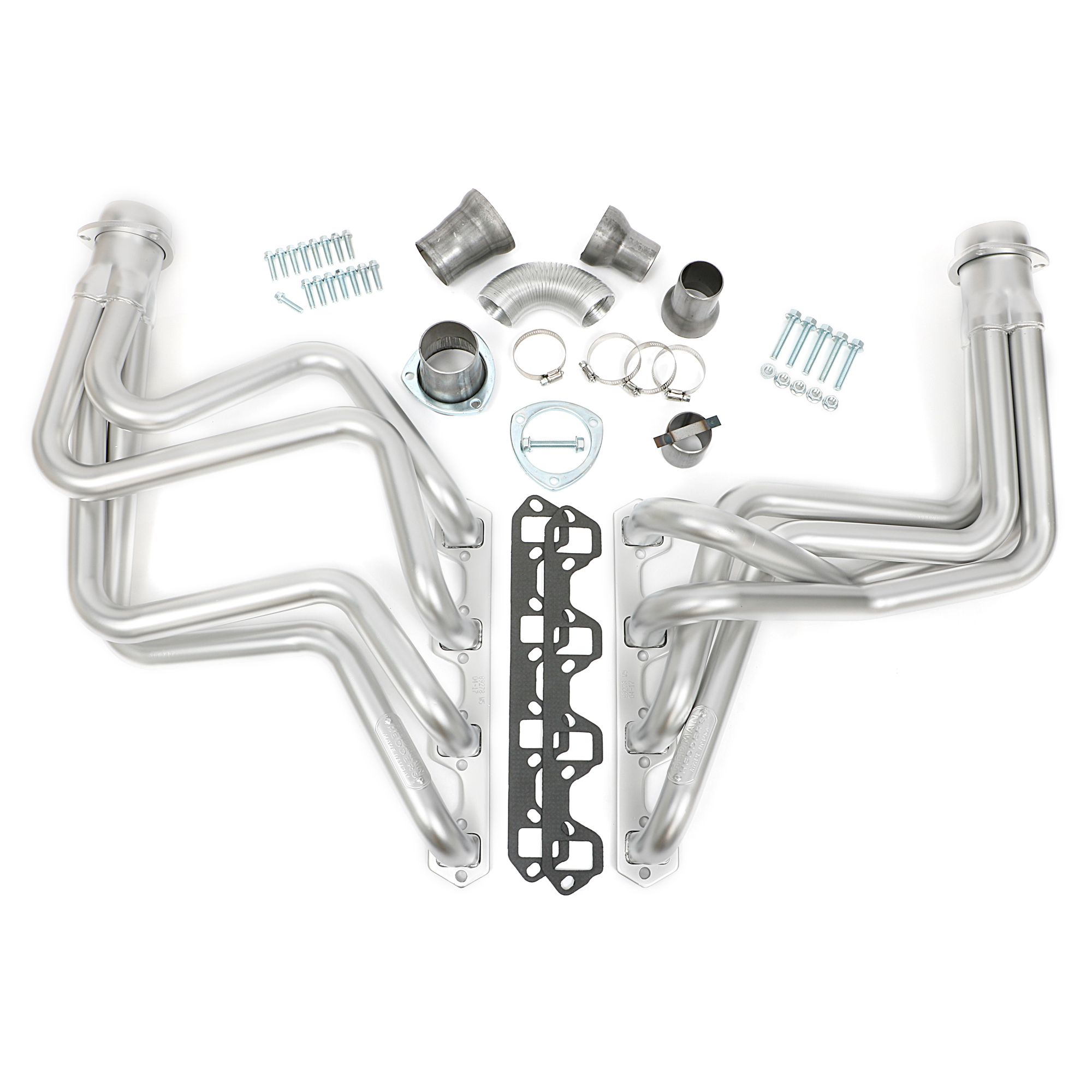 <p>Hedman Hedders has been manufacturing quality headers in the USA since 1954, and they've been manufacturing Ford truck headers decades. Each set uses mild steel, smooth flowing, CNC mandrel bent tubes, that are hand-welded to ensure each pair is identical to the next. Hedman's unique, gasketless ball and socket collector design allows your exhaust system to bolt up to these 351W (5.8L) headers, even if it is not perfectly aligned with the header collectors.</p><p>This set is part of Hedman's ELITE line that uses stout 3/8" flanges, and thicker 14 gauge primary tubes. The heavy-duty construction of HEDMAN ELITE Hedders makes them ideal for high-performance engines, which produce higher exhaust temperatures.</p><p>ELITE models have a MATTE-SILVER ceramic finish that can withstand temperatures up to 1400 degrees F. The coating looks great, and keeps more heat in the tubes, resulting in faster exhaust speeds for improved scavenging, and reduced underhood temperatures.</p><p>These LONG-TUBE headers fit 1980-95 2WD Ford 1/2, 3/4 and 1 ton, and 1982-96 4WD Ford 1/2, 3/4 and 1 ton Trucks and Broncos with a 351W (5.8L) non-E.G.R. engine. The long, smooth-flowing 1-1/2 in. tube design provides superb exhaust flow to let your Ford truck's 5.8L engine breathe easy, and produce loads of horsepower and torque. They fit column-shift automatic and floor-shift manual transmissions, but will not work on lifted trucks, or 4WD models with a Dana 60 front differential.</p><p>Each set includes a pair of gaskets, header flange bolts and collector bolts. No collector gasket is needed.</p><p>Hedman Hedders is so confident in the quality of its headers that these headers are factory backed by a Limited Lifetime Warranty. The ceramic-metallic coating is covered by a 5-year factory warranty, in addition to Hedman's standard lifetime header warranty.</p>