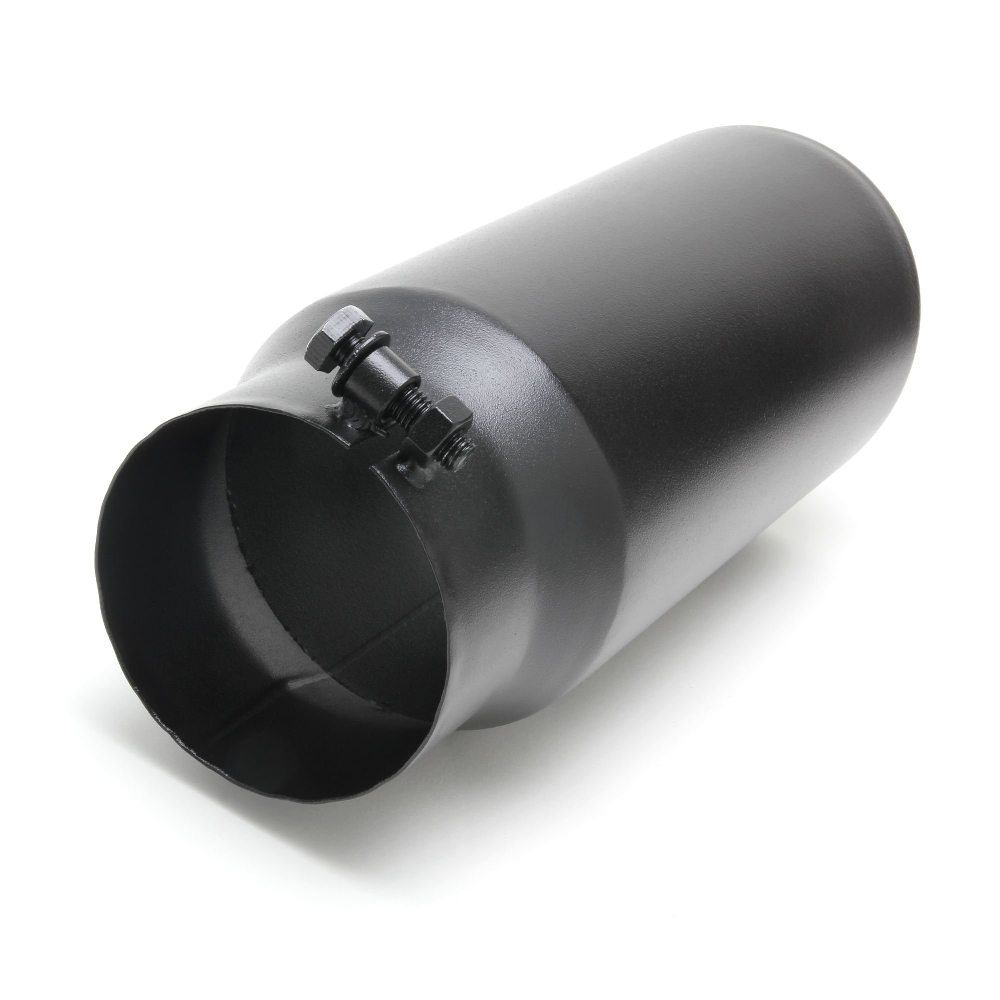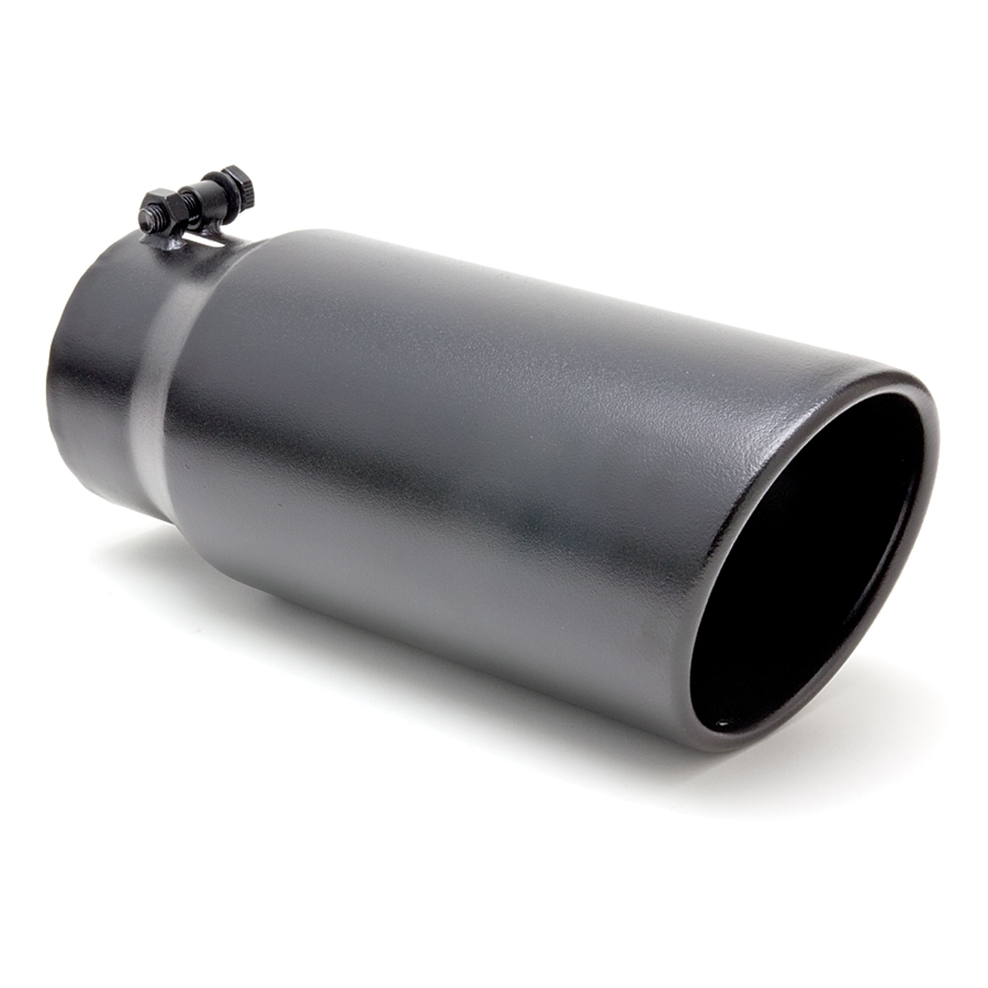 DISCONTINUED-EXHAUST TIP BOLT-ON; GLOSSY BLACK POWDER-COATED; 5" INLET X 6" OUTLET X 15" LONG; ROLLED ANGLE (CLEARANCE)