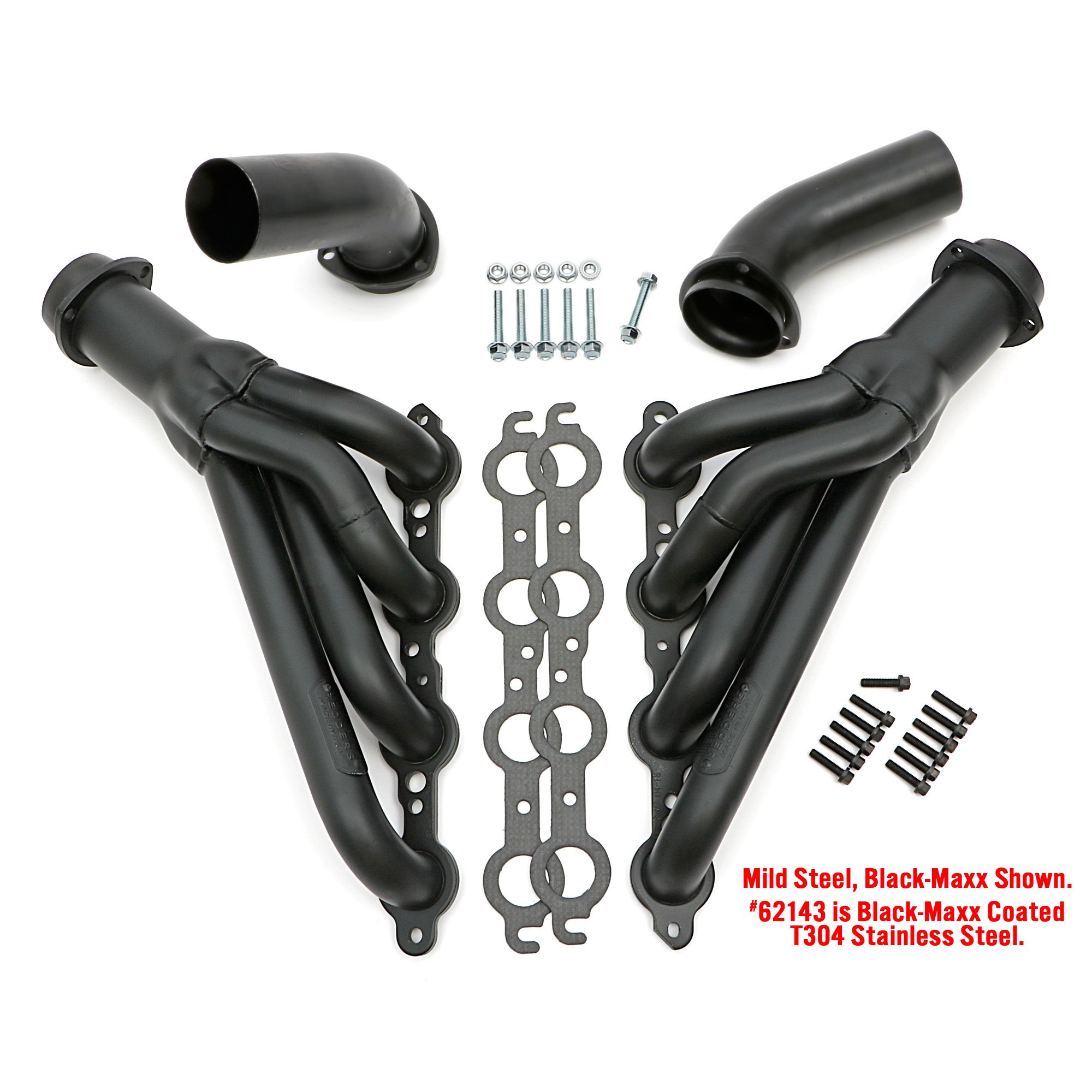 HEDMAN HEDDERS HEDMAN HEADERS 1968-72 CHEVELLE/EL CAMINO (AND RELATED A-BODIES) LS SWAP HEADERS; AUTO TRANSMISSION; 1-3/4 IN. MID-LENGTH TUBE; 3 IN. BALL/SOCKET COLLECTOR- 304 Stainless Steel – Black MAXX