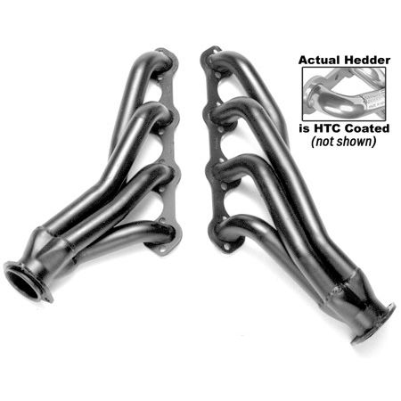 Headers For 1979-93 Ford Mustangs and Other Ford/Mercury Fox-Body Cars with 302W (5.0L) Engine; 1-1/2 in. Mid-Length Tube Design; 2-1/2 in. Ball/Socket Collector- Mild-Steel, HTC Polished-Silver Ceramic Coated