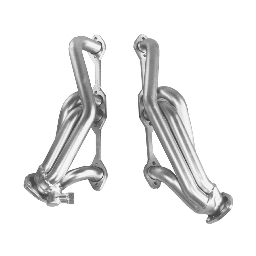 50 State Legal Headers for 1996-00 2WD & 4WD CHEVY/GMC 1500-3500 Pickup Trucks and SUVs, 5.0-5.7L, No A.I.R.; 1-1/2 in. Shorty Tube, Factory Collector- Mild Steel, HTC Polished Silver Ceramic-Metallic Finish