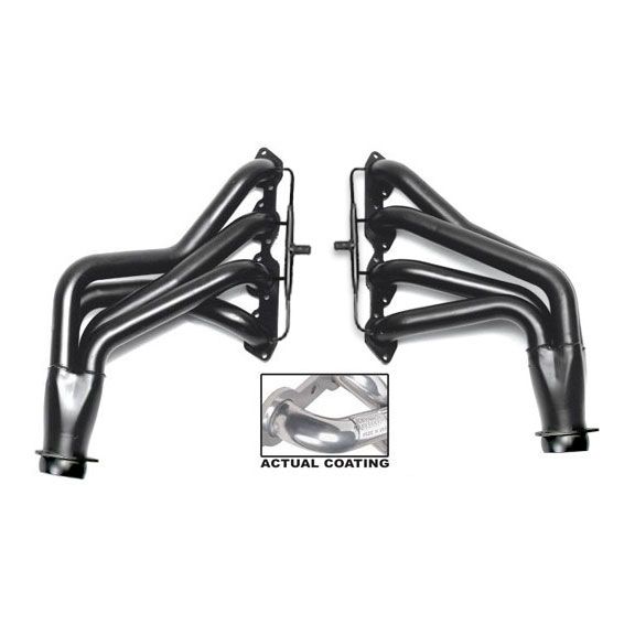 Long Tube Headers For 1965-82 Chevy Corvette With 396-502 Big Block Chevy; 2 in. Long Tube; 3 in. Collector; Floor Shift Auto/Manual Transmission; 50-State Legal- HTC Polished-Silver Ceramic Coated Mild Steel