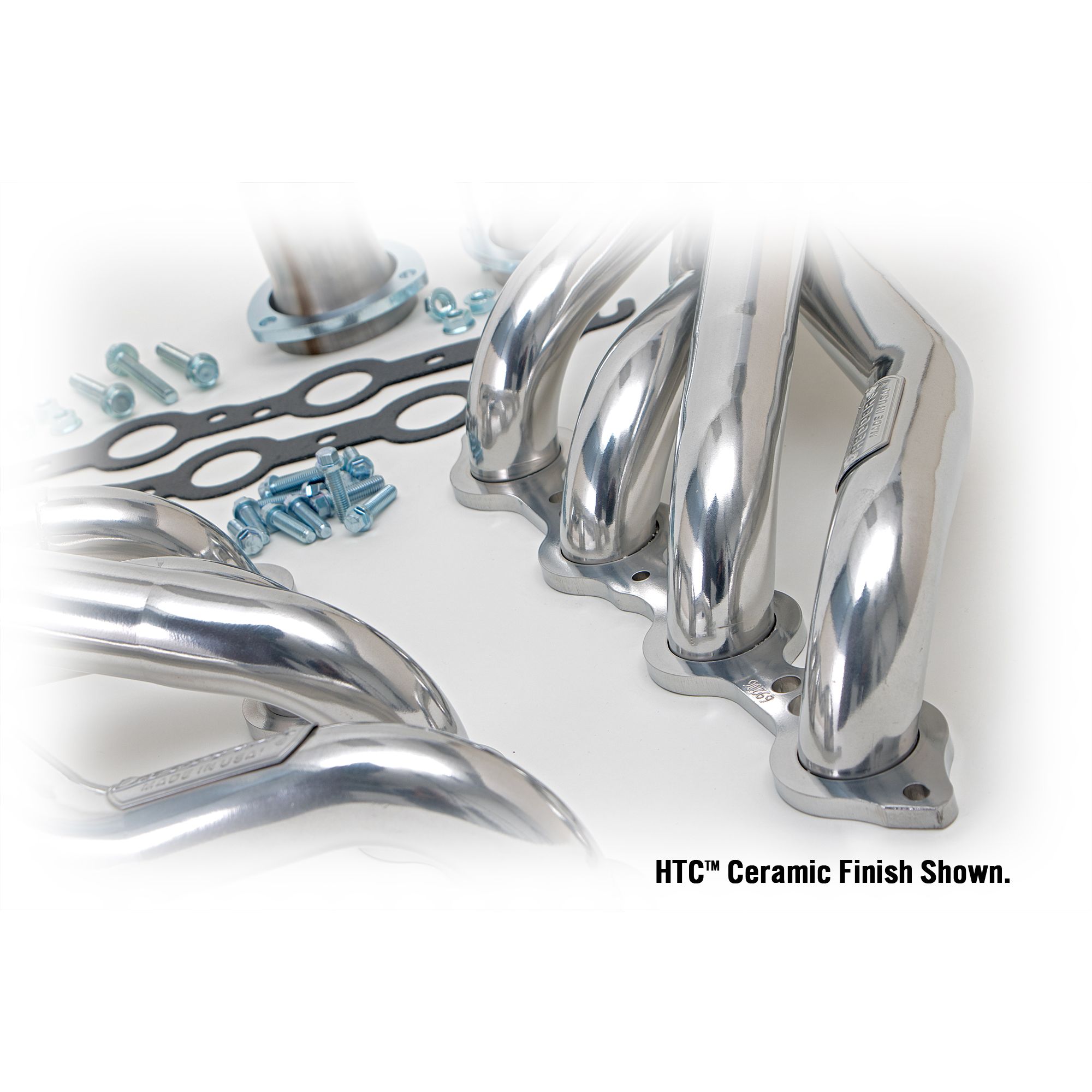 Headers For Installing An LS Engine into 1988-98 CHEVY/GMC 1/2 Ton TRUCKS AND SUVS (2WD Only); 1-3/4 in. Diameter, Mid-Length Tube; 3 in. Ball and Socket Collector- HTC Polished-Silver Ceramic Coated, Mild Steel Construction