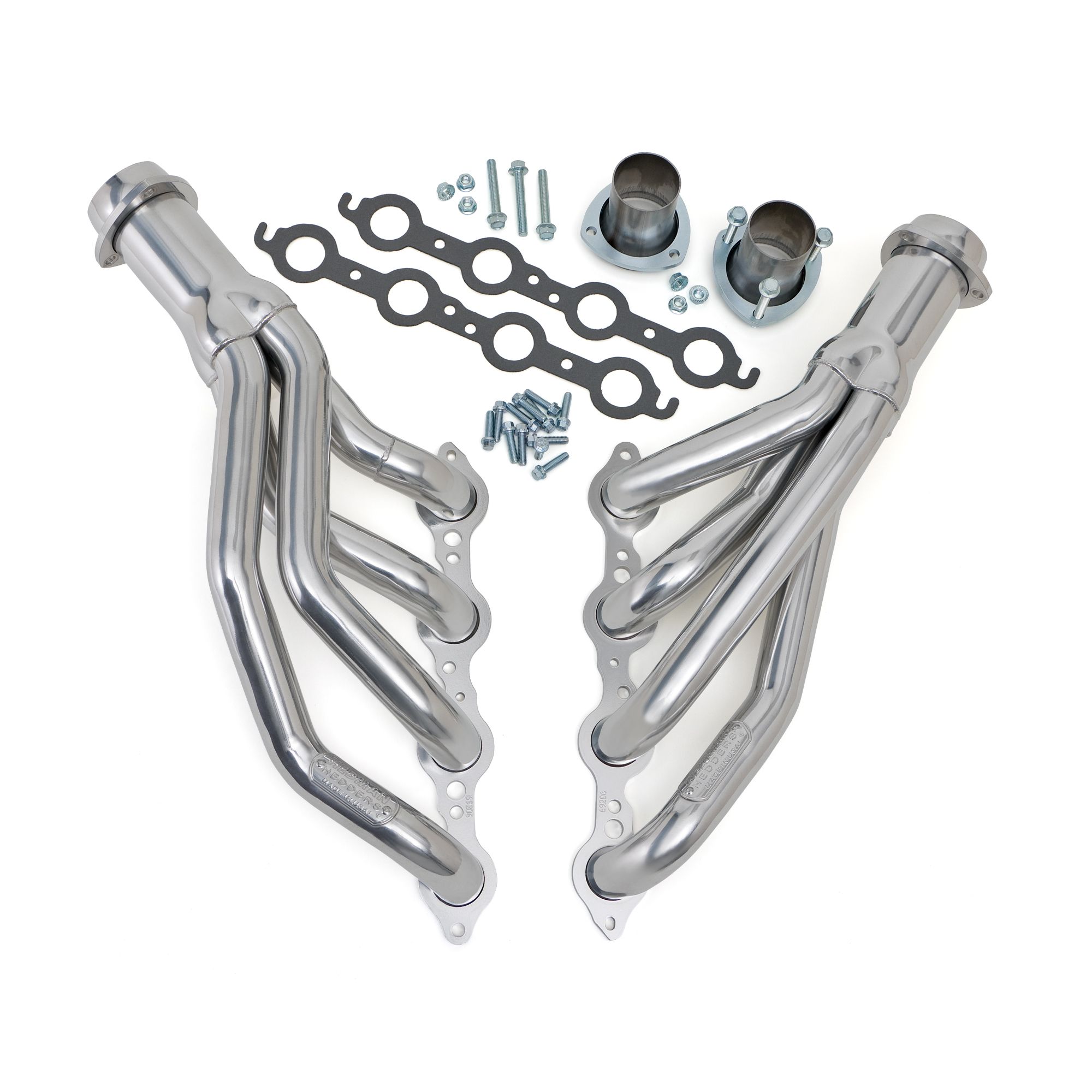 <p>Hedman Hedders has been manufacturing quality headers in the USA since 1954, and they've been manufacturing long and mid-length tube headers for Chevy and GMC Trucks for decades, so designing a good fitting, great performing set of headers for this popular LS engine swap was easy.</p><p>Each set uses smooth flowing, CNC mandrel bent tubes, that are hand-welded to ensure each pair is identical to the next. The stout 3/8 in. header flanges ensure a great seal that will resist warping, and Hedman's unique, gasketless ball and socket collector design allows your 2WD, 1/2 ton OBS (Old Body Style) Chevy/GMC Truck or SUV's exhaust system to bolt up, even if it is not perfectly aligned with the header collectors. Hedman is so confident in the quality of its headers that these headers are factory backed by a Limited Lifetime Warranty. The tough, polished silver HTC ceramic coating on these headers is good up to 1400 degrees. It helps keep underhood temperatures down, and prevent rusting of the headers. Unlike chrome, this finish will not blue or discolor. The coating is warrantied for 5 full years.</p>