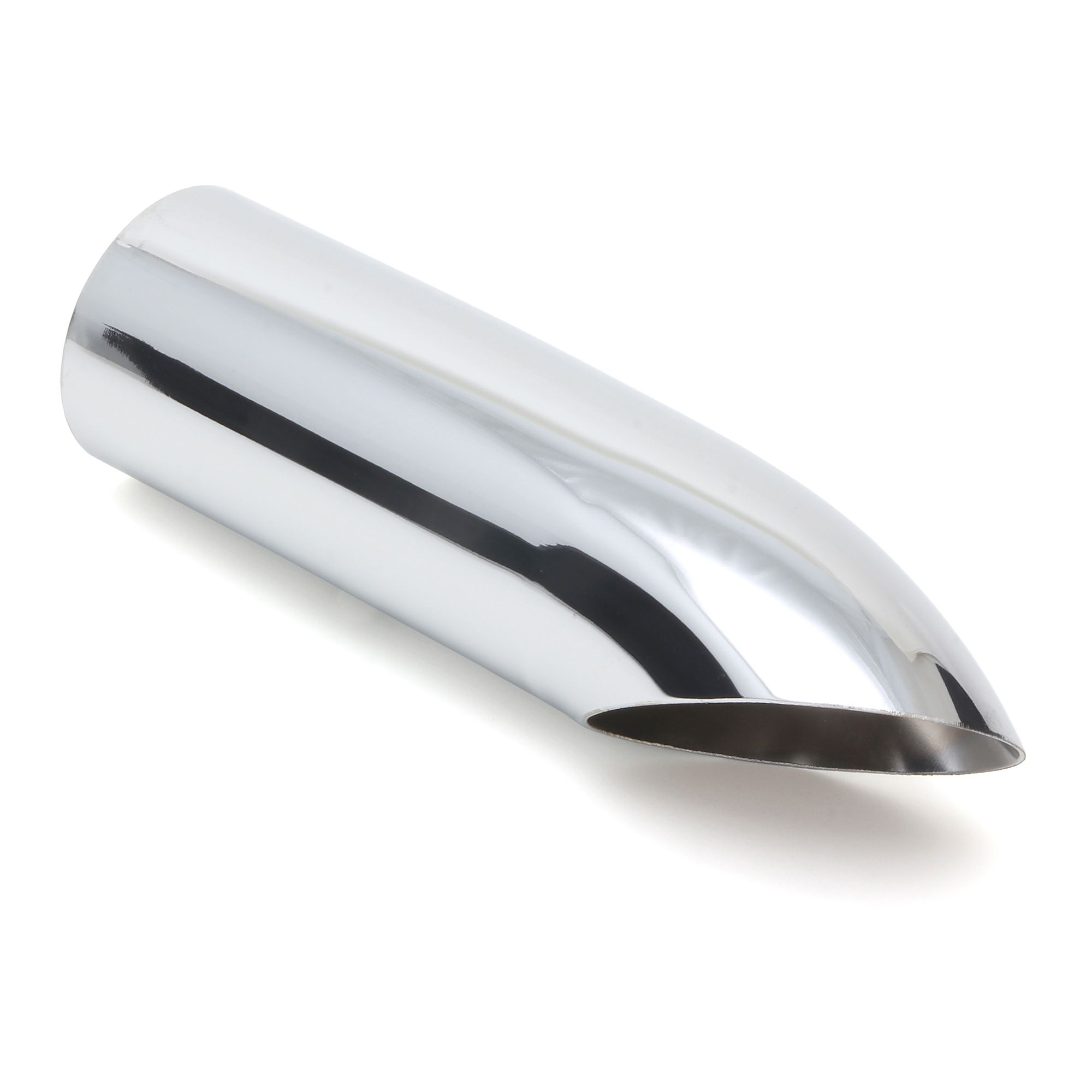 Notes: ROUND- Turn Down Exhaust Tip; 2-1/4 in. Exhaust; 9 in. Long; 2-3/8 in. Outlet- STAINLESS