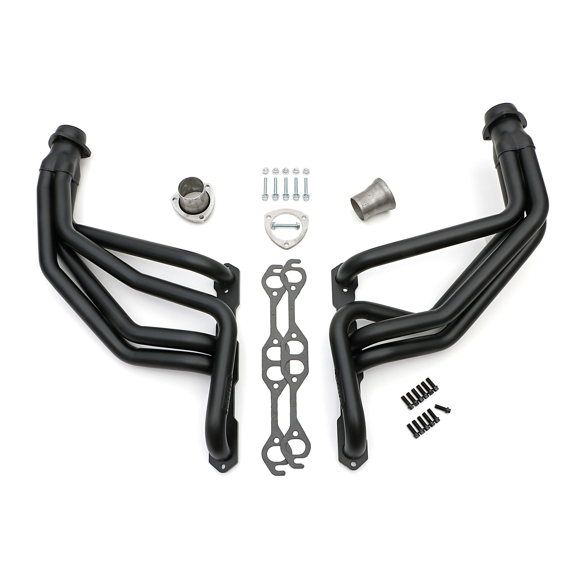 <p>Hedman Hedders has been manufacturing quality headers in the USA since 1954, and they've been manufacturing LONG and MID-LENGTH tube headers for Chevy trucks for nearly as long. These headers are manufactured from 100% T304 Stainless Steel to provide durability rivaled only by Hedman's ELITE® line of heavy-duty headers. They have smooth flowing, CNC mandrel bent tubes, that are hand-welded to ensure each pair is identical to the next, and utilize 3/8 in. thick T304 stainless flanges to prevent warping. Hedman's unique, gasketless ball and socket collector design allows your Small Block Chevy exhaust system to bolt up, even if it is not perfectly aligned with the header collectors.</p><p>These BLACK-MAXX™ coated, stainless LONG-TUBE headers use Hedman's best selling Chevy truck header configuration, and fit a wide range of early to mid-year 1967-1987 2WD & 4WD Chevy/GMC 1/2 Ton and 3/4 ton trucks, Blazers and Suburbans <i>(check the application listings for exact fitment)</i>, powered by a Small Block Chevy engine <i>(without A.I.R. System)</i>. The smooth 1-5/8 in. tube design provides ample exhaust flow to let your truck's 283-400 SB Chevy engine breathe easy, and produce maximum horsepower and torque. These stainless steel headers ship from the factory with a satin black ceramic-metallic coating that withstands exhaust temperatures up to 1400 degree F.</p><p>Each set includes a pair of gaskets, header flange bolts and collector bolts. No collector gasket is needed.</p><p>Hedman Hedders is so confident in the quality of its headers that these headers are factory backed by a Limited Lifetime Warranty. The ceramic-metallic finish is covered by a 5-year factory warranty, in addition to Hedman's standard lifetime header warranty.</p>
