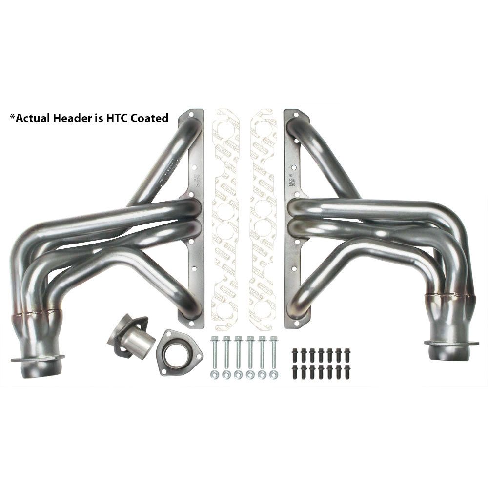 Silver Ceramic Coated T304 Stainless Steel, Long Tube Headers For 1967-87 CHEVY/GMC 4WD (only) 1/2-3/4 Ton Pick-Up Truck, Blazer and SUV with 283-400 SB Chevy (Centered Engine Chassis Only); 1-5/8 in. Long Tubes; 3 in. Ball/Socket Collector