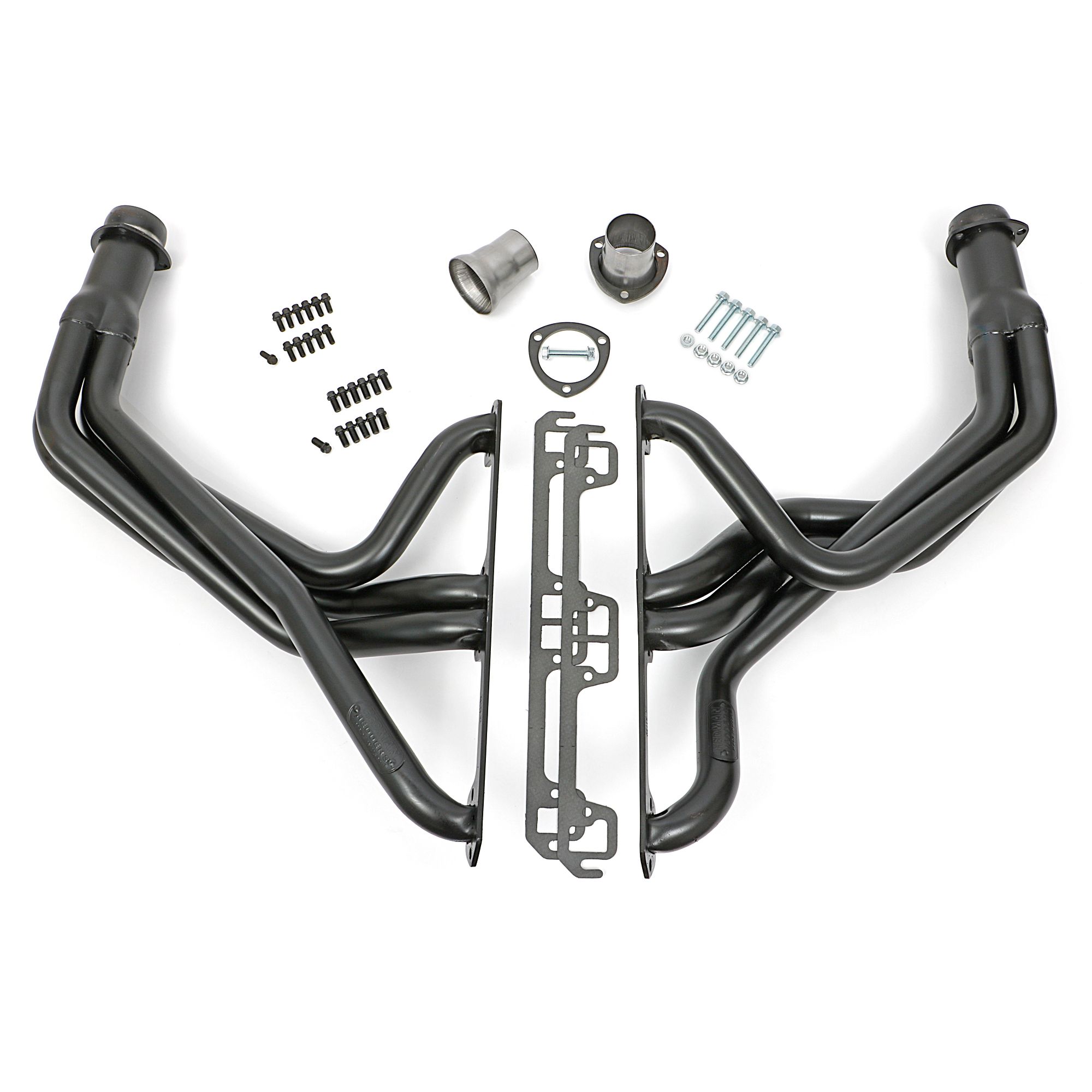 <p>Hedman Hedders has been manufacturing quality headers in the USA since 1954, and they've been manufacturing Jeep headers for decades. Each set uses mild steel, smooth flowing, CNC mandrel bent tubes, that are hand-welded to ensure each pair is identical to the next. Hedman's unique, gasketless ball and socket collector design allows your exhaust system to bolt up to these GEN-3 AMC V8 headers, even if it is not perfectly aligned with the header collectors.</p><p>These uncoated, LONG-TUBE, Fenderwell-Exit headers fit 1972-1986 Jeep CJ5, CJ6 and CJ7 models with a 304-401 AMC V8. They are compatible with both manual and automatic transmission setups, and the long, smooth 1-3/4 in. tube, Dog-Leg port design provides excellent exhaust flow to let your CJ's Tall-Deck, AMC V8 engine breathe freely, and produce maximum torque to power you through virtually any trail.</p><p>These headers are uncoated, and ship from the factory with a temporary black paint that will burn off when submitted to normal operating temperatures. For protection against the element and lower underhood temperatures, these headers are also available with a silver or black ceramic-metallic finish.</p><p>Each set includes a pair of gaskets, header flange bolts and collector bolts. No collector gasket is needed.</p><p>Hedman Hedders is so confident in the quality of its headers that these headers are factory backed by a Limited Lifetime Warranty.</p>