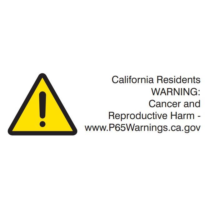 Prop 65 – Short Label: WARNING: Cancer and Reproductive Harm – www.p65warnings.ca.gov