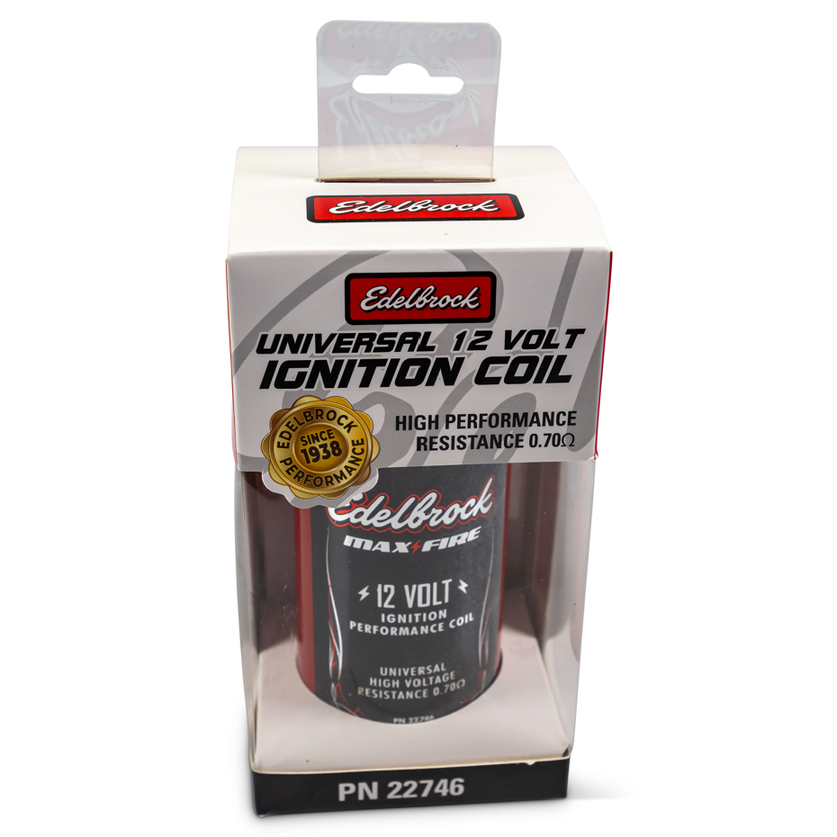 Edelbrock Ignition Coil #22746 is a high-output oil-filled cannister-style coil recommended for use with Pro-Flo 4 EFI applications and is also compatible with other aftermarket EFI and ready-to-run distributors. Features include a higher winding ratio for more voltage build-up and higher spark energy when compared to competitor coils. The main difference between the Edelbrock #22746 Coil and other cannister-style coils is the primary resistance of 0.7 ohms compared to 0.4 ohms for standard ignition systems. A primary resistance of 0.7 ohms is the minimum that we recommend for use with Pro-Flo 4 EFI systems.