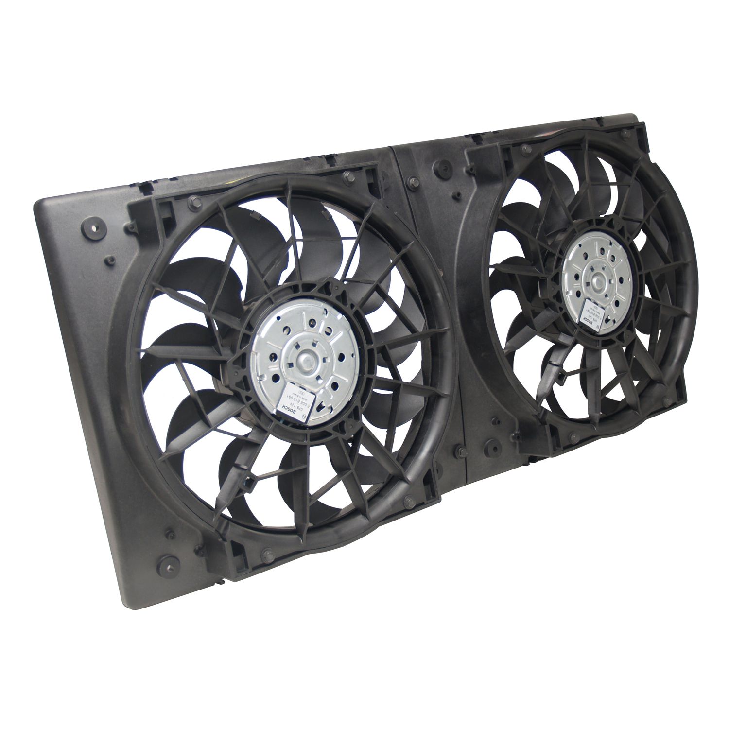 This high performance primary cooling fan kit combines two high output 265 watt Bosch motors with stator flow directors and an OE-quality injection molded fan shroud to produce one serious dual electric fan setup. Designed for puller applications, It's perfect for perfect for muscle cars, street rods and heavy duty trucks, this combination produces 4,000 CFM while each fan draws 24.8 amps. Includes through radiator mounting system and two high amp relay harnesses.