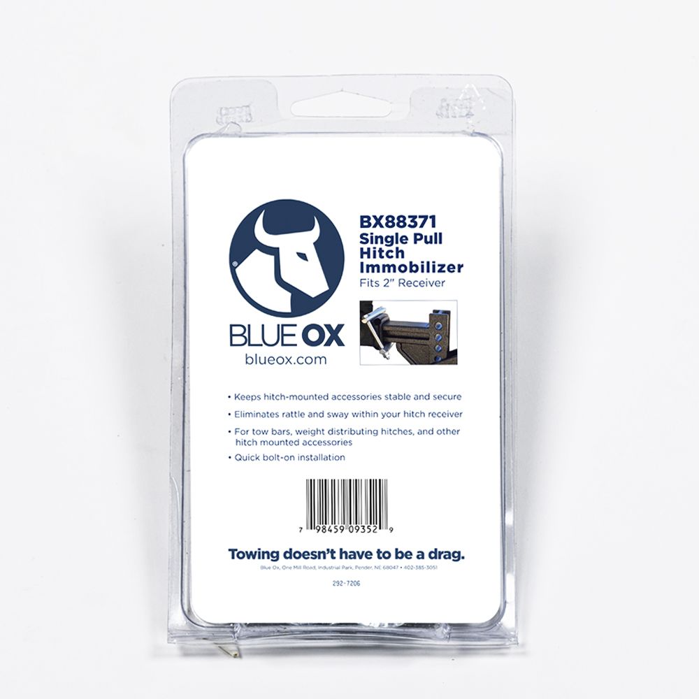 Blue Ox Single Pull Immobilizer for 2" Receiver keeps hitch-mounted accessories stable and secure while eliminating rattle and sway with in the hitch receiver.
