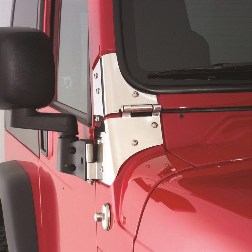 Enhance the look and functionality of your Jeep with Smittybilt Windshield Hinges. Designed to fit 1997-2006 Jeep Wrangler TJ models, these high-quality hinges are made from durable stainless steel for a sleek appearance. Featuring a direct fit and no-drill installation, these hinges make upgrading your Jeep easy and hassle-free. The package includes all necessary mounting hardware, and Smittybilt stands behind its products with a Limited Lifetime Structural Warranty and a 5-Year Finish Warranty. Add style and strength to your ride without the hefty price tag!