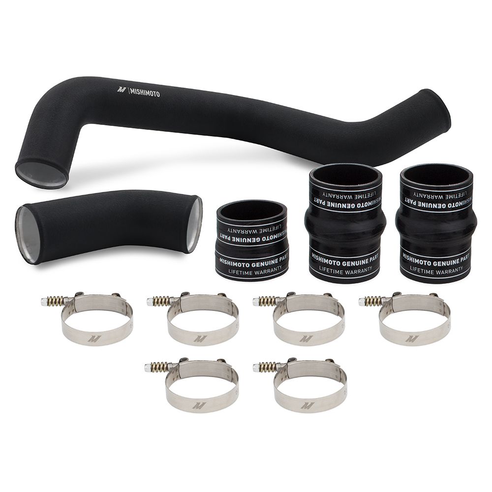 TechSpec Includes: (1) Aluminum Intercooler Pipe w/ Bung–(1) Aluminum Intercooler Pipe–(3) Silicone Boots with DuraCore Technology–(6) Constant-Tension T-Bolt Clamps–Mishimoto Lifetime Warranty