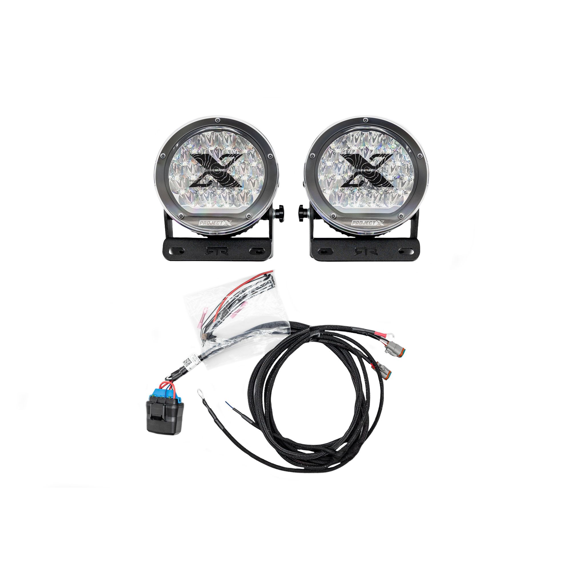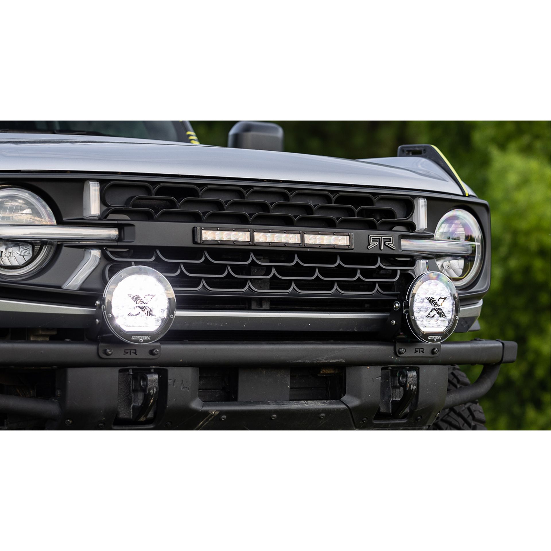 Modern Aggressive RTR Styling. With a unique design that plays off the factory surfaces of your Bronco or Braptor, you will find the RTR Front Bumper Light Mount Kit with PROJECT X HP.70 Lights stands out from anything else on the market.This kit includes (2) Project X HP.70 Lamps and (2) RTR Bumper Brackets, designed to fit Broncos or Braptors equipped with modular bumpers. PROJECT X HP.70 lamps have a combo beam pattern and are rated at 15,000 lumens raw / 8,889 effective lumens. Simple, Straight Forward Installation. The RTR Front Bumper Light Mount Kit w/ PROJECT X HP.70 Lights is designed using OE Manufacture CAD data and is installed with high-quality hardware and mounting points. Aftermarket forward facing lighting laws vary based on state/region. Please check your local laws and regulations for installation requirements prior to purchasing. There is no modification required for a clean, straight forward installation. Installation & What's In The Box. What's in the Box. (2) PROJECT X HP.70 Lamps. (2) RTR Bumper Brackets. Lighting Wiring Harnesses. Hardware Kit. Installation Time- 1-2 hours. Difficulty Level-Beginner to moderate.