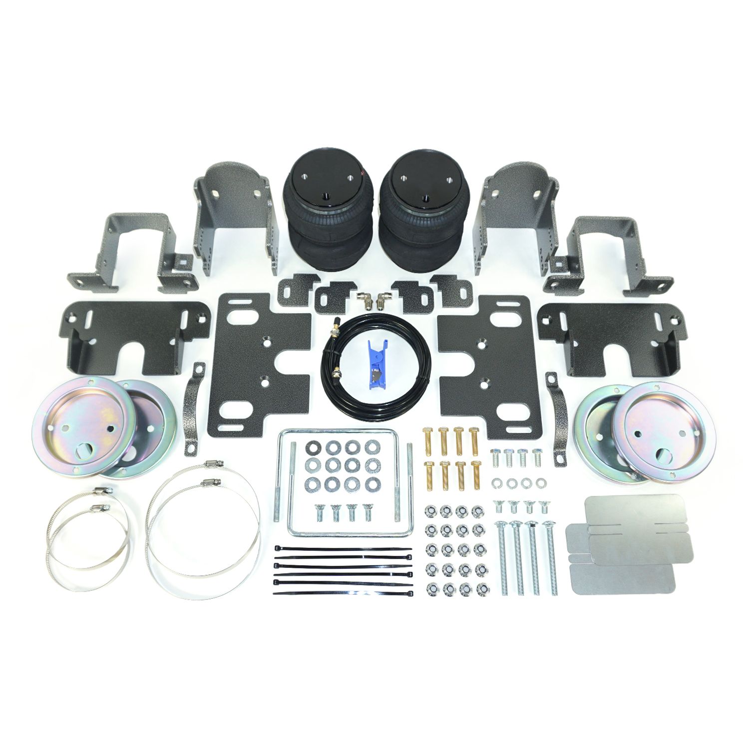 KIT CONTENTS: 2 air springs, Corrosion resistant roll plates, Precision laser cut powder coated steel brackets, Grade 5 plated hardware, All accessories required for the perfect bolt on install, Comprehensive installation guide