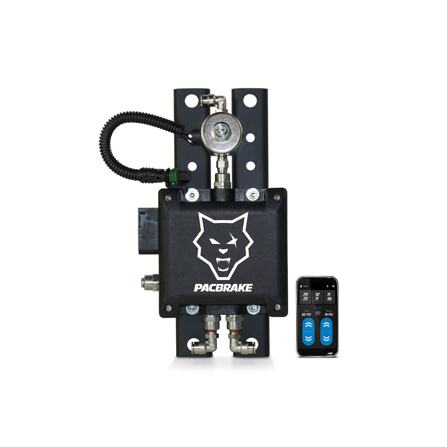 • Forget fumbling with your phone every time you hook up the trailer or hit a grade. The included Bluetooth remote gives you access to your air settings with the press of a button, whether you’re in the cab or out back.