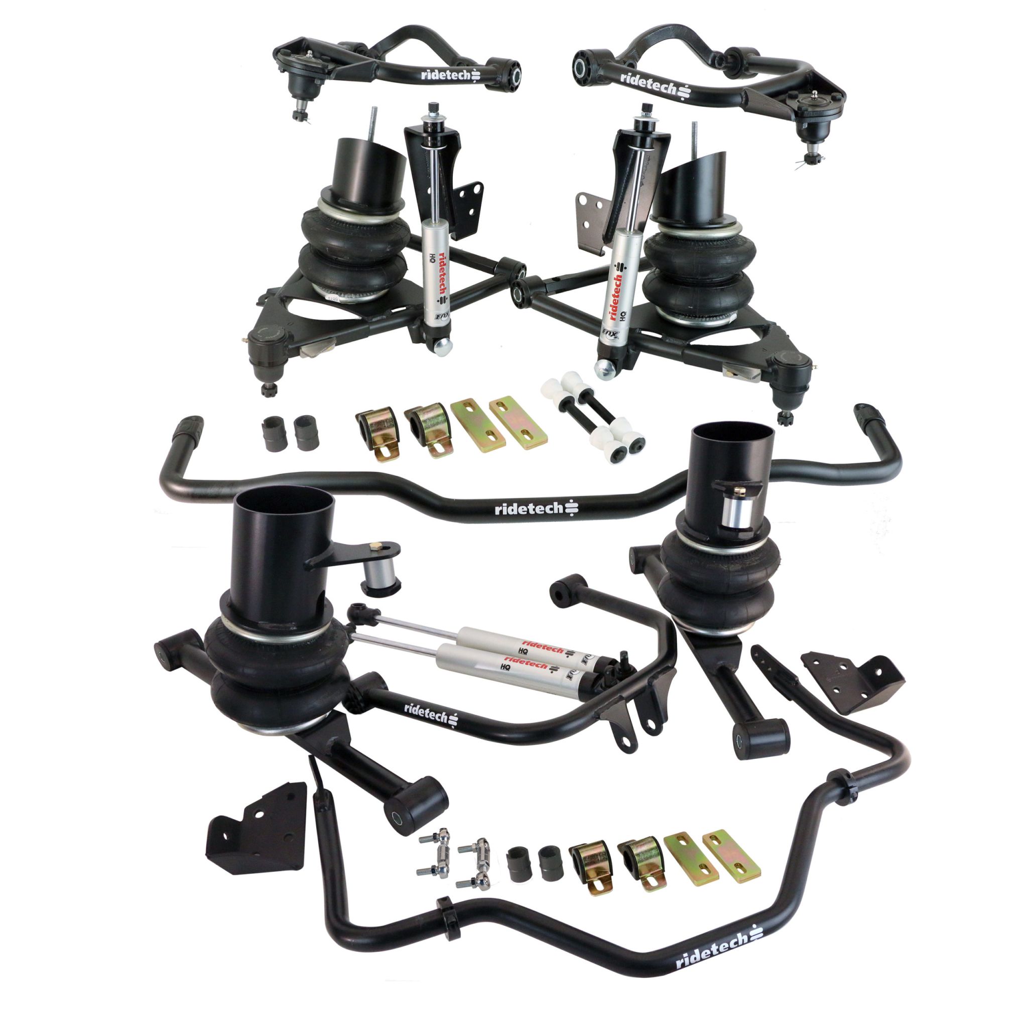 HQ Air Suspension System for 1958 Impala. Includes front CoolRide with HQ shocks, upper and lower StrongArms, rear CoolRide with HQ shocks, rear upper and lower StrongArms and front and rear sway bars.