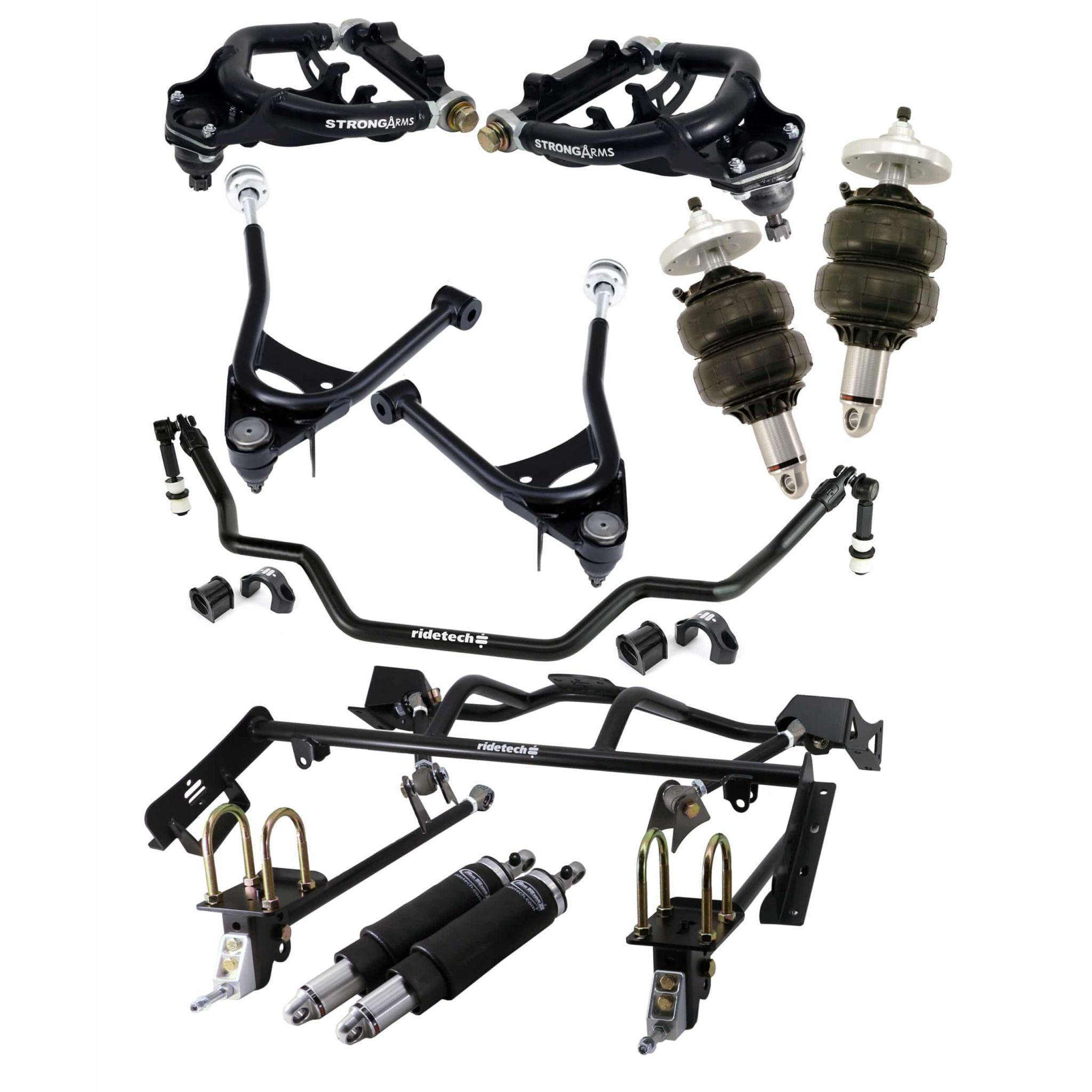 HQ Air Suspension System for 1967-1970 Mustang. Includes front and rear HQ Shockwaves, upper and lower StrongArms, Bolt-On 4-Link with double adj. bars and front sway bar.