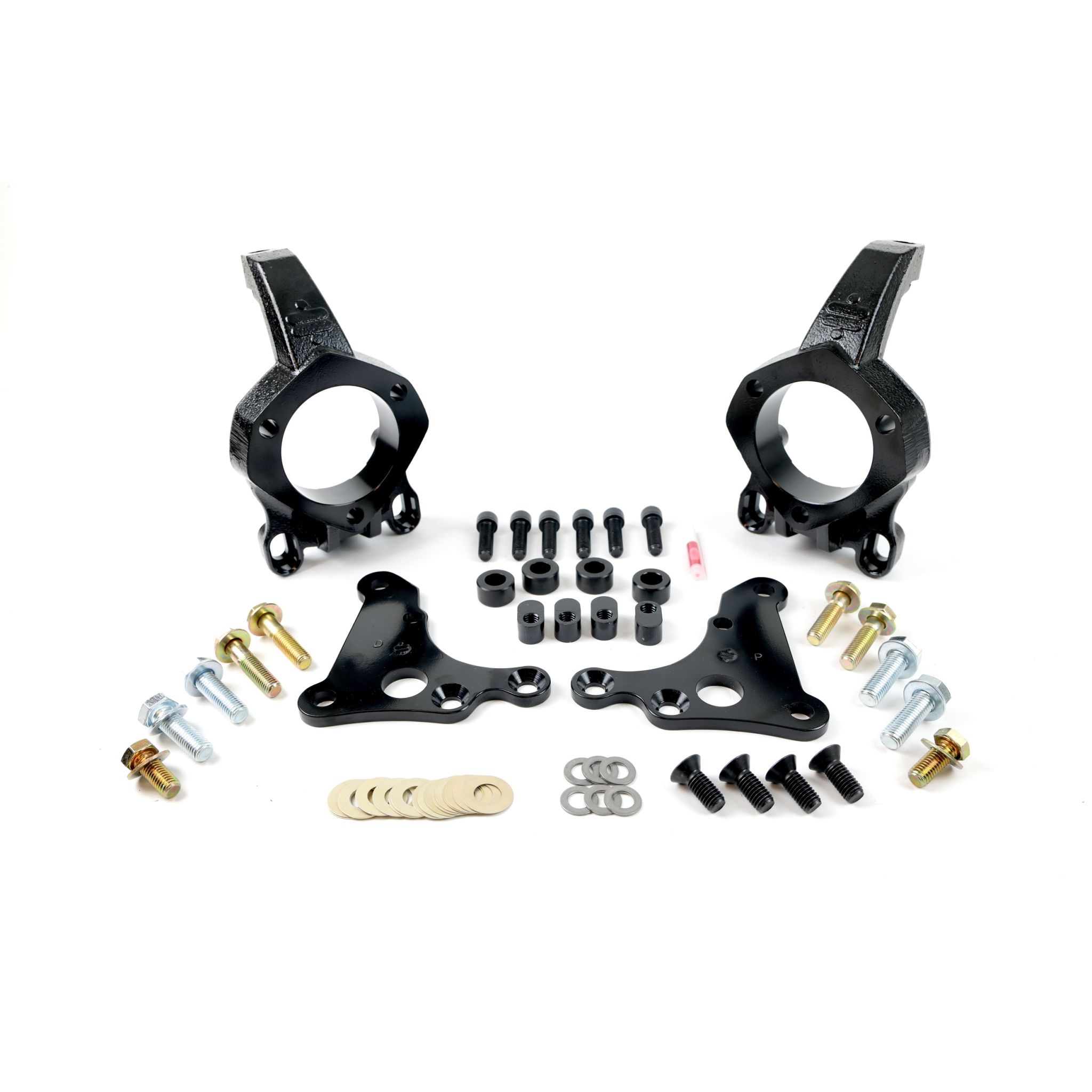 HQ Air Suspension System with hub spindles for 1964-1967 GM A-Body. Includes front and rear HQ Shockwaves, front and rear StrongArms, Corvette hub spindles with caliper brackets, front and rear sway bars.