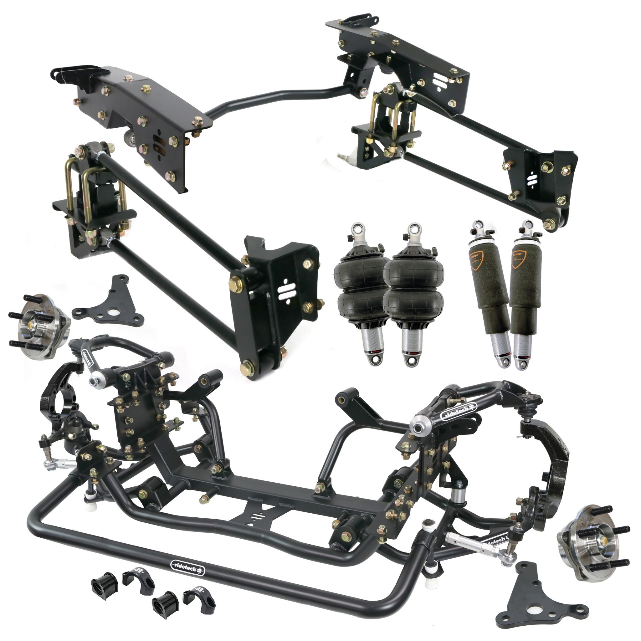 HQ Air Suspension System with hub spindles for 1973-1979 F-100. Includes front and rear HQ Shockwaves, front suspension system and spindles with S550 hubs, caliper brackets, Bolt-On 4-Link.