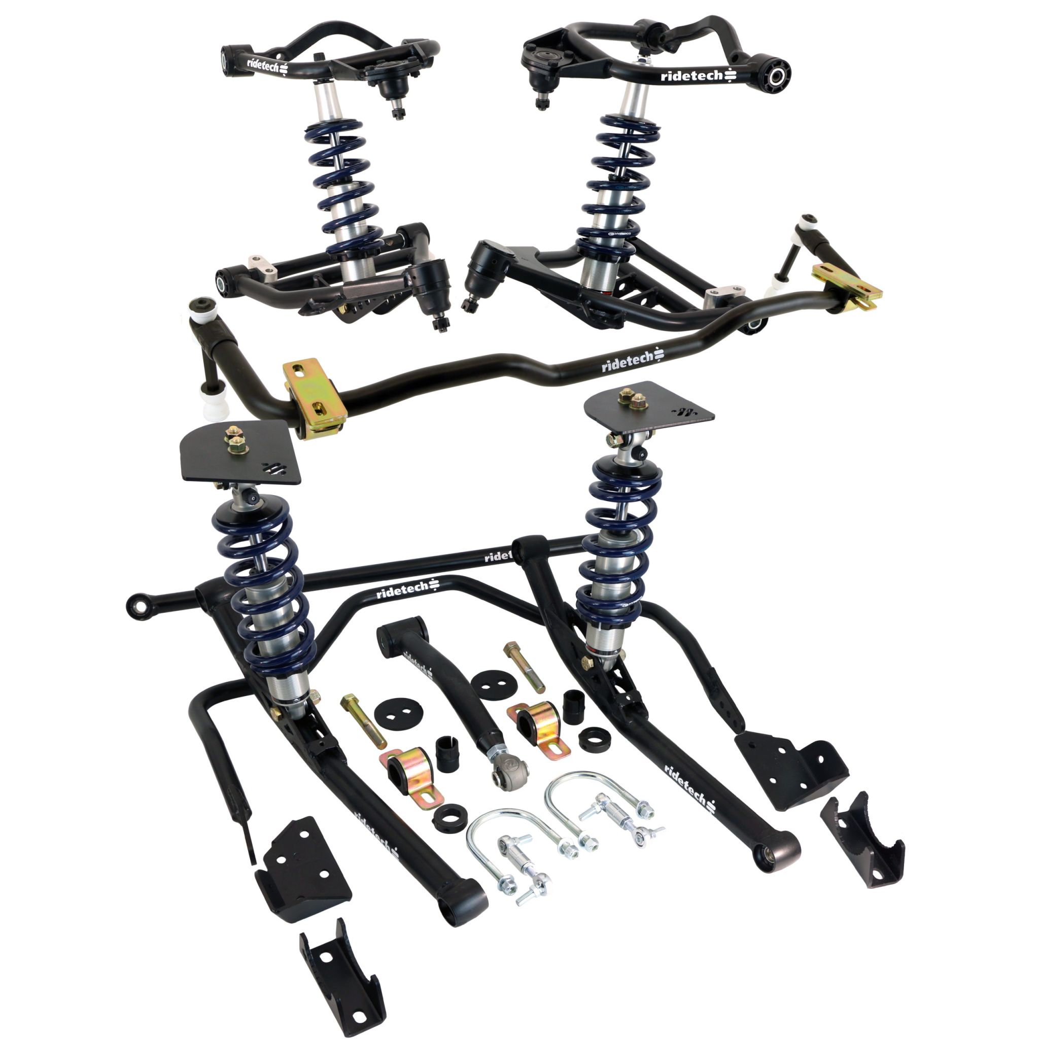 HQ Coil-Over System for 1959-1964 Impala. Includes HQ front and rear Coil-Overs, front upper and lower StrongArms, rear upper and lower StrongArms, and front and rear sway bars.