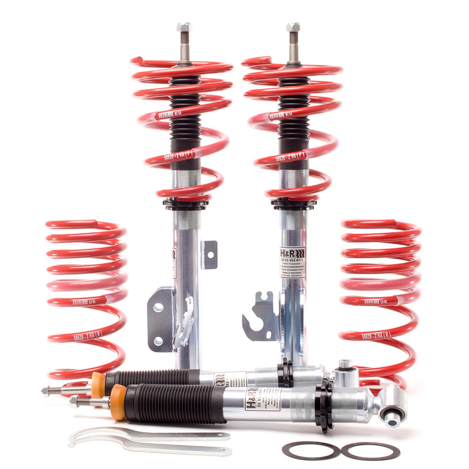 H&R'street Performance Coil Overs are the perfect suspension'solution for discerning drivers-from daily drivers'to serious tuners-who can appreciate awesome handling and superb ride comfort. Each coil over shock is custom valved to work in conjunction with a precision-engineered progressive rate spring, creating a finely tuned suspension'system. The fully threaded shock body allows for adjustable vehicle height. This feature helps balance vehicle weight, resulting in a lower center of gravity and improved performance and control.