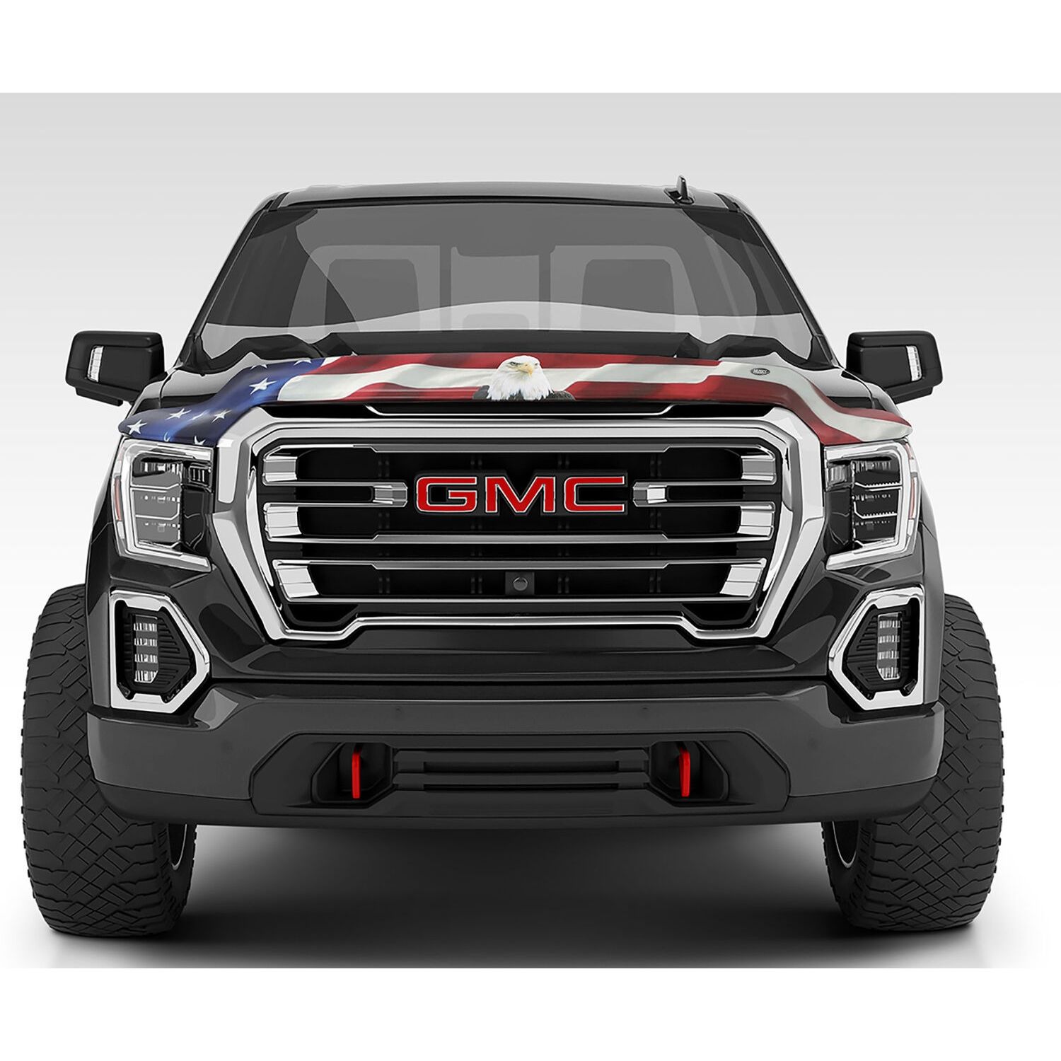 Road debris and bug splatter are just a part of life, but chips and scratches in your paint don't have to be. With Husky Liners(R) American Flag with Eagle Bug Shield, you get super durable protection in a contour-fit design that not only deflects road debris, it reflects your values. The bright, high-definition American flag design is available with a bald eagle and is constructed with robust acrylic construction that stands up to impact, UV exposure, and other elements that can damage your paint job. The precision fitment hugs the contours of your truck's front end but sits just far enough away from the hood to allow easy cleaning. Proudly made in the USA with global materials.