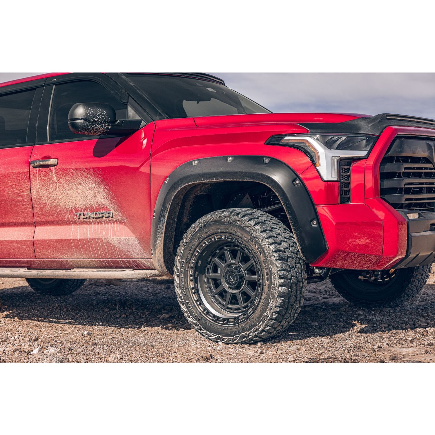 Put durable, rugged-looking protection over your oversized tires and low-offset wheels with Pocket Style Fender Flares. Made with our proprietary Dura-Flex(R) 2000 ABS construction that can be paint-matched to your vehicle, they stand up to abrasions, chemicals, chips, cracks, and damage from any kind of road. You get maximum tire coverage and a tough off-road look with stylish stainless steel bolt-on rivets to complete the look. Made in the USA with global materials and backed by Husky Liners Limited Lifetime Warranty.