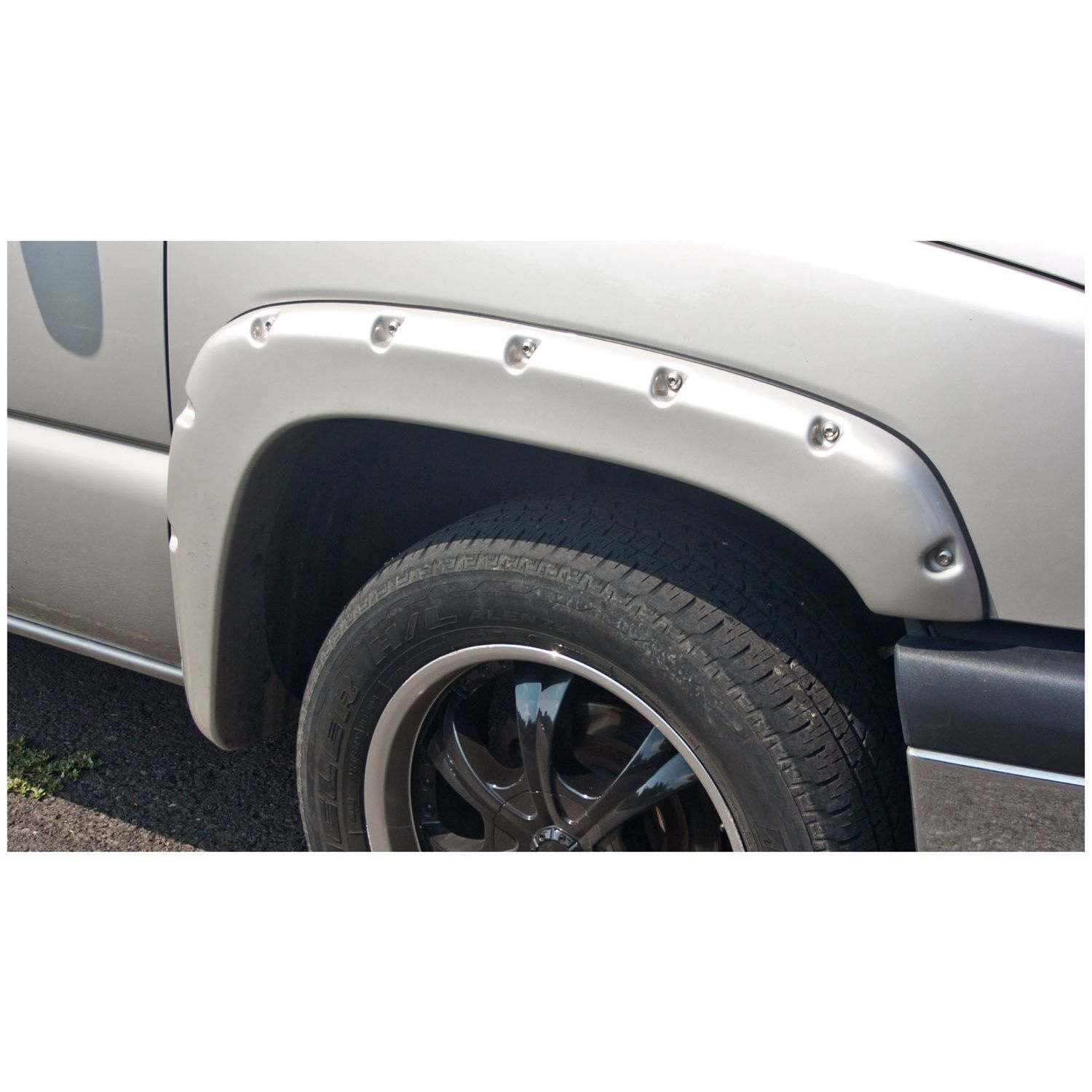 Put durable, rugged-looking protection over your oversized tires and low-offset wheels with Pocket Style Fender Flares. Made with our proprietary Dura-Flex(R) 2000 ABS construction that can be paint-matched to your vehicle, they stand up to abrasions, chemicals, chips, cracks, and damage from any kind of road. You get maximum tire coverage and a tough off-road look with stylish stainless steel bolt-on rivets to complete the look. Made in the USA with global materials and backed by Husky Liners Limited Lifetime Warranty.