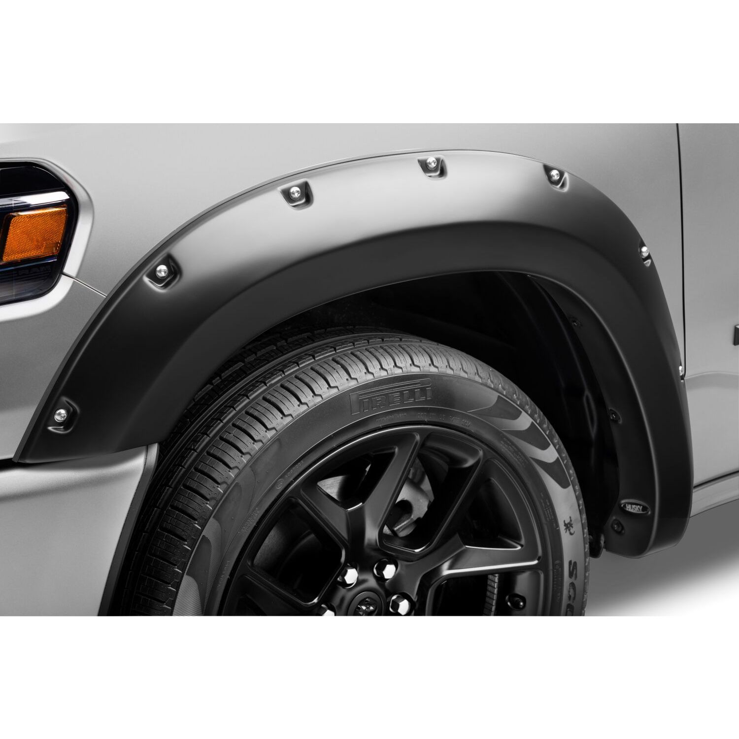 Put durable, rugged-looking protection over your oversized tires and low-offset wheels with Pocket Style Fender Flares. Made with our proprietary Dura-Flex(R) 2000 ABS construction that can be paint-matched to your vehicle, they stand up to abrasions, chemicals, chips, cracks, and damage from any kind of road. You get maximum tire coverage and a tough off-road look with stylish stainless steel bolt-on rivets to complete the look. Made in the USA with global materials and backed by Husky Liners Limited Lifetime Warranty.