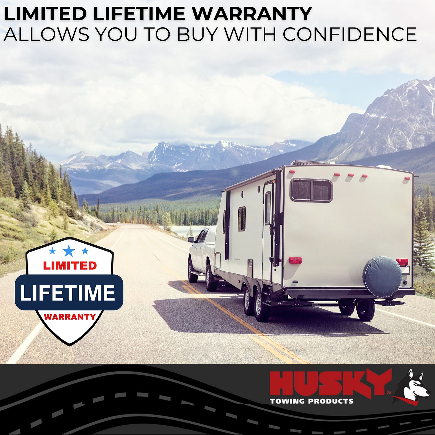 Husky?s Round Bar weight distribution hitch gets the job done with a classic design with the addition of some great design features. The head design provides for reduced installation time and allows easy access to the hitch ball shank. A sway control ball