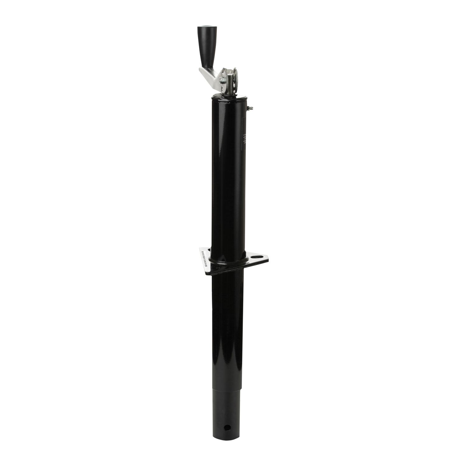 Manual Top Wind Round A Frame Jack 5000 Tongue Weight Capacity 14-13/16 Inch Travel Retracts To 11 Inches 2-1/4 Inch Outside Tube Diameter Bolt-On or Weld-On Mount Painted Black Outer/ Black Inner Tube Retail Packaging