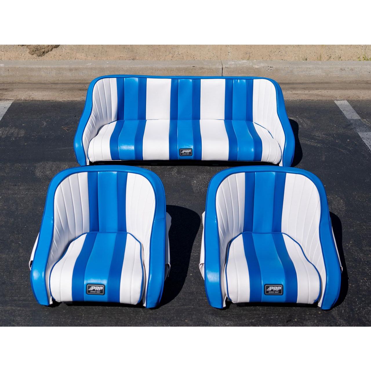Upgrade Your Watercraft with PRP's Hydro Lite Retro Suspension Boat Bench Enhance Comfort and Safety Add extra comfort and containment to your river boat or aluminum jet boat with PRP’s Hydro Retro Suspension Boat Bench. Unlike most boat benches that are just plastic bases with foam on top, this Hydro bench is built with a reinforced tube frame and a suspension liner that absorbs shocks from rough waters. Allowing for a faster and more comfortable ride even in choppy conditions. The thick foam padding provides excellent comfort and is moisture and mold-resistant, making it perfect for the marine environment. The seat features a removable bottom cushion that allows water to drain out the bottom of the seat, helping to keep you dry. Customize Your Seat Personalize your seat with our UV- and water-resistant Vinyl for durability. Design the perfect color combination to match the look of your boat. Don't forget to add a matching Hydro Lite Retro or Hydro Retro Front Seats! Fitment: The Hydro bench can be made from 36-70" width (measured at the widest point outside to outside) to fit almost any size boat. Benches 36-46" will have 2 stripes down the middle. Benches 47-70" will have 3 stripes down the middle. With a low profile of only 17" tall, it matches the exact same height as the Hydro Lite Seats, and is 5" lower than the standard Hydro Seats. Easy Installation The Hydro Lite Retro Bench is sold individually. The Seat Frame can be directly mounted down to most bunks on various watercraft. Simply pull up the bottom cushion to access the bolt locations. Proudly made in the USA. *Note: The removable cushion is not recommended or rated as a USCG flotation device.