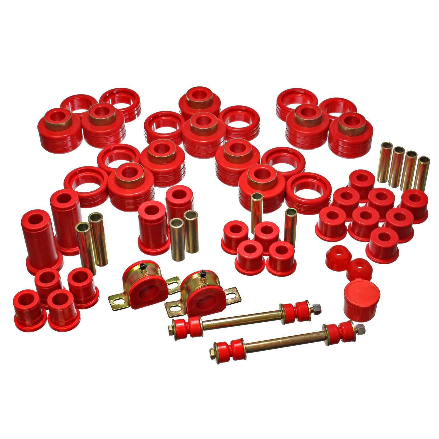 Hyper-Flex System; Red; Incl. Front Control Arm Bushing; Front Sway Bar Bushings; Rear Spring And Shackle Bushings; Body Mount; Tie Rod End Boots; Performance Polyurethane;
