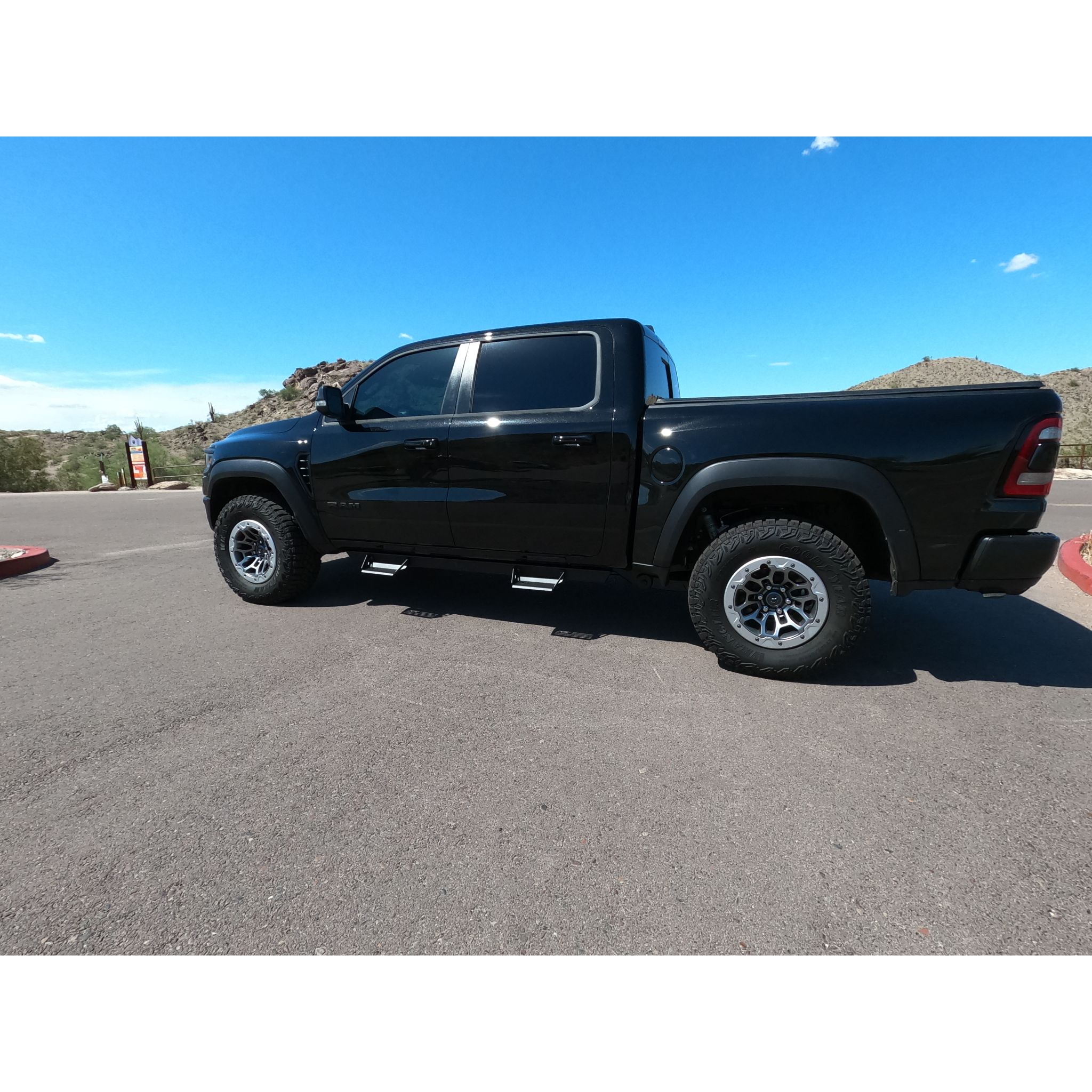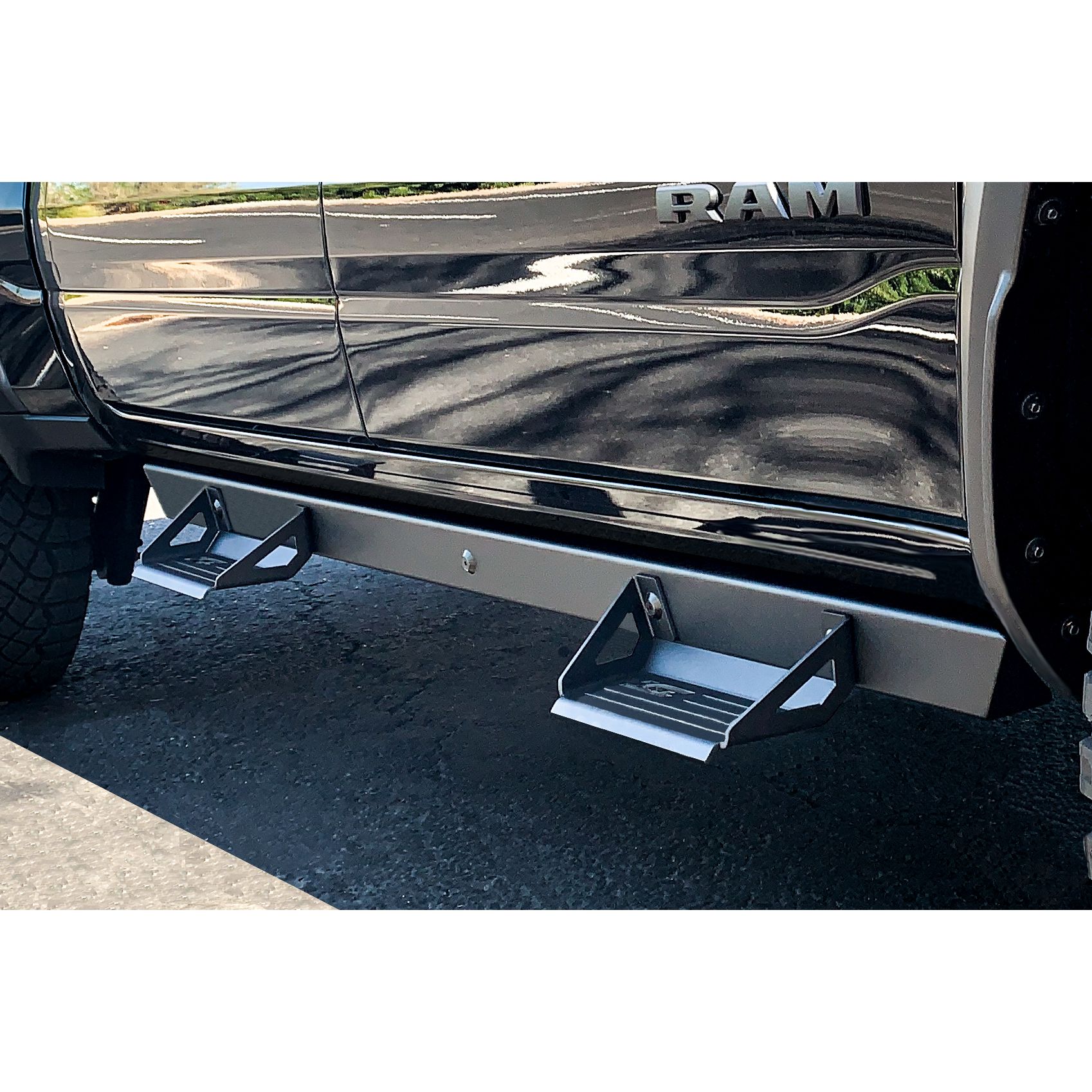 Bolt on, direct fit, Rocker mounted, bolt on drop steps, all hardware and brackets included, body modification not required, eco dipped and powdercoated black