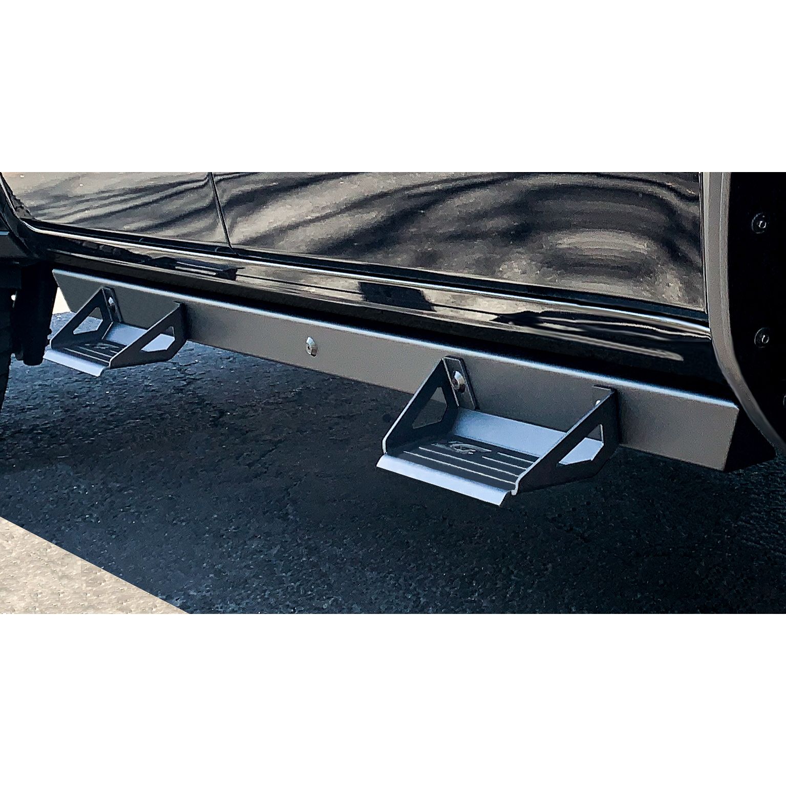 Bolt on, direct fit, Rocker mounted, bolt on drop steps, all hardware and brackets included, body modification not required, eco dipped and powdercoated black