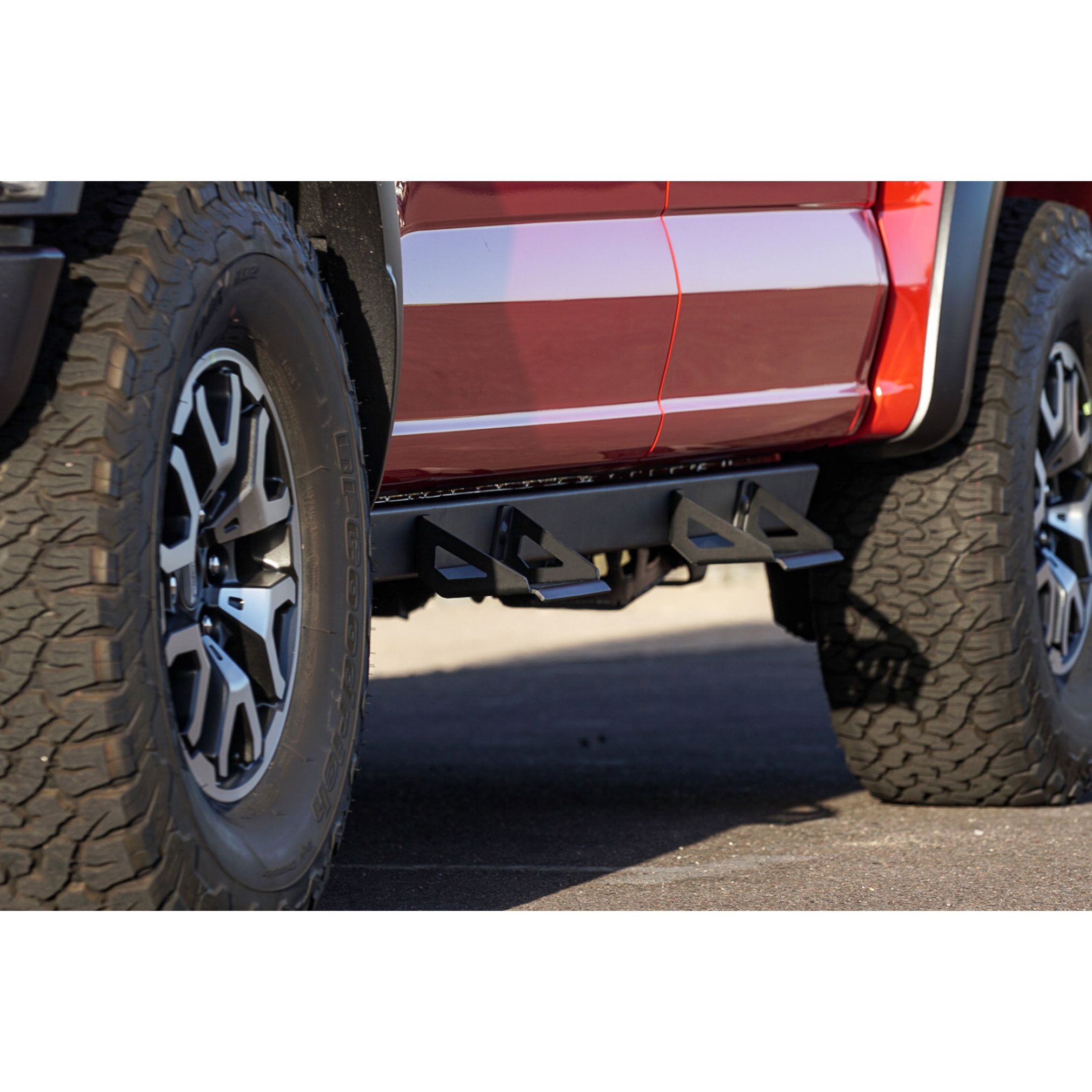 Bolt on, direct fit, Rocker mounted, bolt on drop steps, all hardware and brackets included, body modification not required, eco dipped and powdercoated black