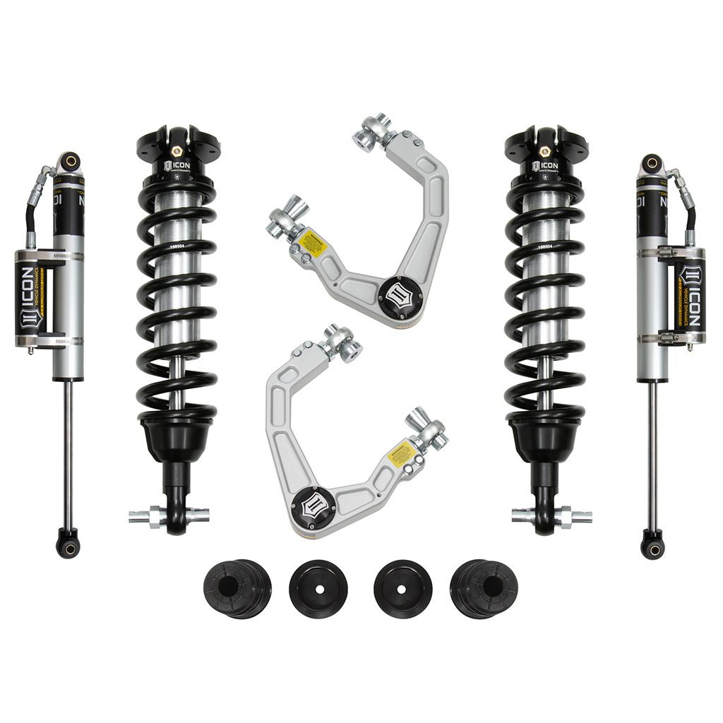 This system features billet aluminum upper control arms with ICON's patented Delta Joint. The Delta Joint is a heavy-duty high angle ball joint that combines the durability of a ball joint with the performance characteristics of a traditional uniball. While the industry standard uniball does a great job of allowing the control arms of a vehicle to articulate with little bind, they do have an inherent weakness that leaves more to be desired when used in a daily driven application – exposure to the elements. The Delta Joint features a zinc plated housing providing the first layer of corrosion resistance, while a tough grease seal keeps potentially harmful elements out of the inner workings of the joint. Metal on metal construction and a greaseable design increase the longevity of the Delta Joint while at the same time allowing for noise-free operation. What makes the Delta Joint unique is that it brings the best of both worlds to ICON upper control arms with features that make it more robust than a uniball, and at the same time capable of greater angularity than a typical ball joint.