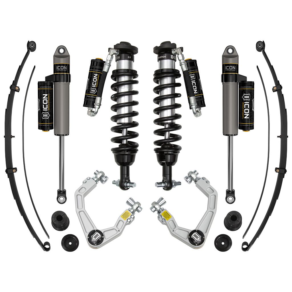 This system features billet aluminum upper control arms with ICON's patented Delta Joint. The Delta Joint is a heavy-duty high angle ball joint that combines the durability of a ball joint with the performance characteristics of a traditional uniball. While the industry standard uniball does a great job of allowing the control arms of a vehicle to articulate with little bind, they do have an inherent weakness that leaves more to be desired when used in a daily driven application – exposure to the elements. The Delta Joint features a zinc plated housing providing the first layer of corrosion resistance, while a tough grease seal keeps potentially harmful elements out of the inner workings of the joint. Metal on metal construction and a greaseable design increase the longevity of the Delta Joint while at the same time allowing for noise-free operation. What makes the Delta Joint unique is that it brings the best of both worlds to ICON upper control arms with features that make it more robust than a uniball, and at the same time capable of greater angularity than a typical ball joint.