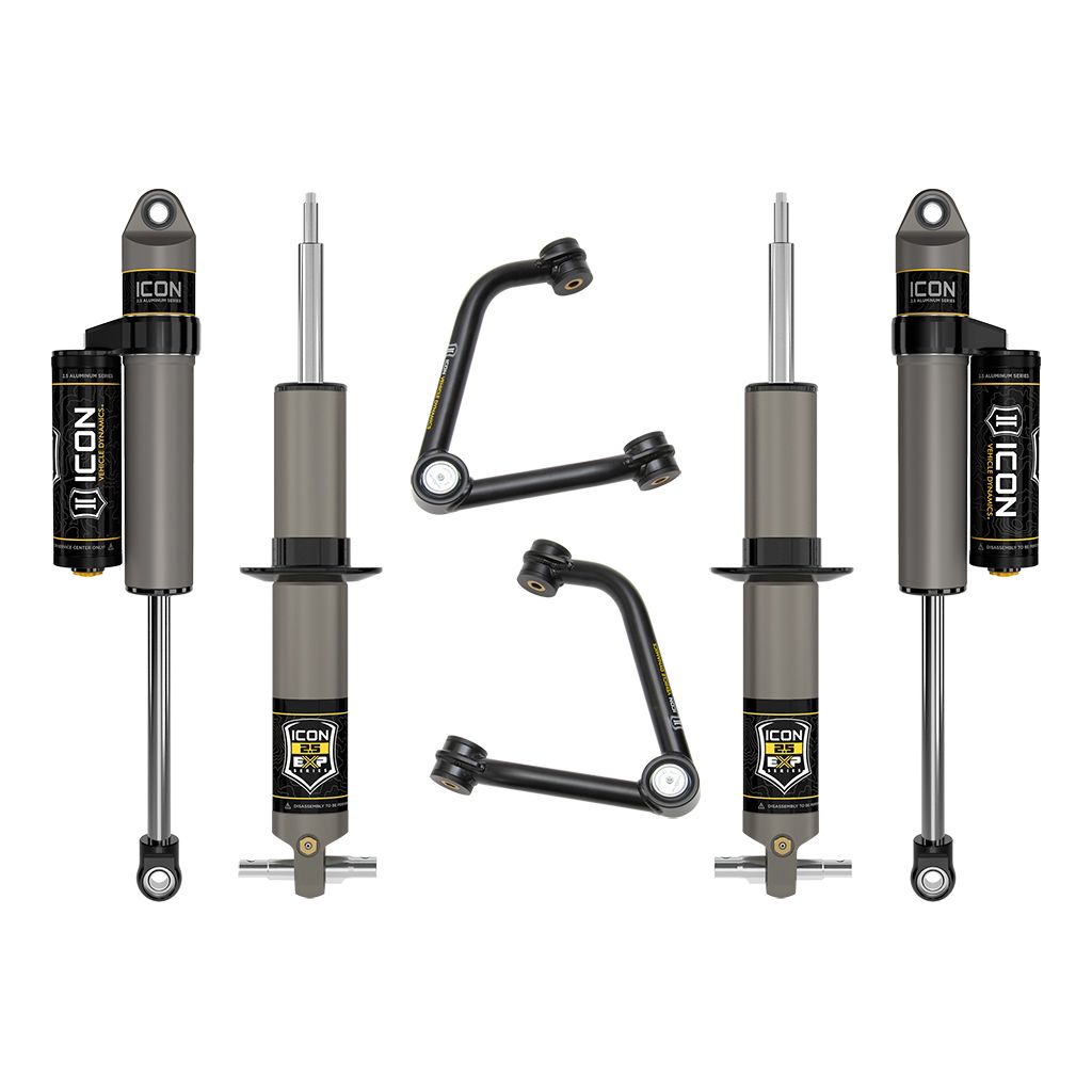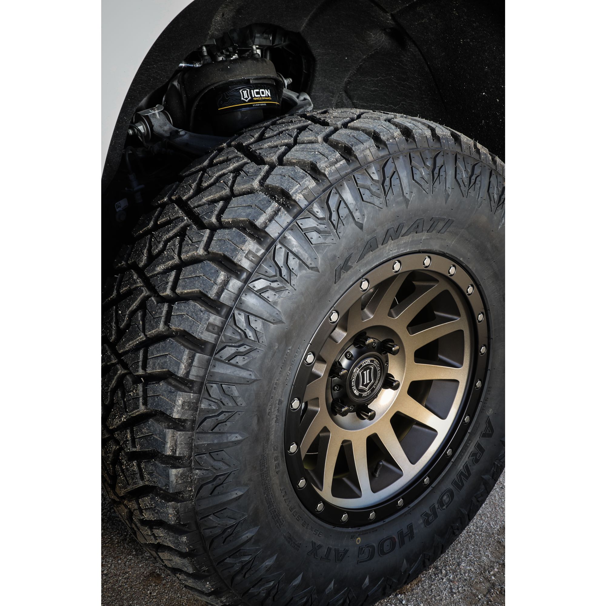 Rounding out the Stage 3 EXP suspension system are 2.5 Aluminum Series rear shocks specially tailored for the 2019-2023 GM 1500. The 2.5 Aluminum Series shocks’ larger diameter offers outstanding performance off-road and a smooth ride on the street. Piggyback reservoirs ensure optimum performance by increasing the duration of consistent damping regardless of situation, keeping the shocks at a cooler operating temperature during heavy use. They also feature a unique internal Bump Zone that when used creates an additional 20% of damping force to help better control hard bottom outs. Their pairing with the ICON 2.5 EXP Series front coilovers results in balanced vehicle control from front to rear and an excellent overall driving experience for your Silverado 1500 or Sierra 1500.