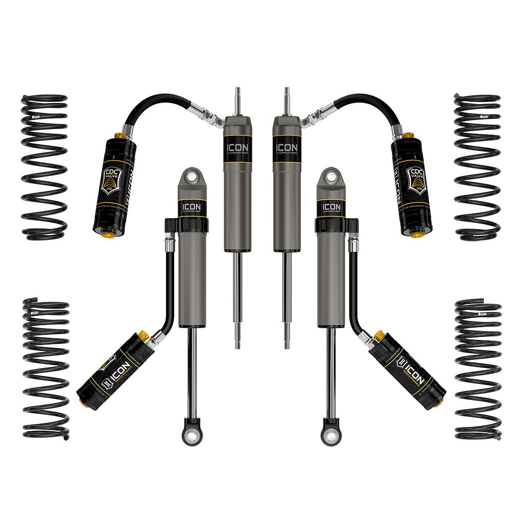 The Stage 2 suspension system includes dual rate front and rear coil springs that provide 2” of lift over stock to allow for the installation of larger, more aggressive wheel tire combinations and increased ground clearance. 2.5 Aluminum Series remote reservoir shock absorbers with CDCV that feature a vehicle specific valving are also included for optimized ride quality and balanced damping front to rear. The 2.5" remote reservoir shocks ensure optimum performance by increasing the duration of consistent damping regardless of situation, keeping the shocks at a cooler operating temperature during extended off-road use. ICON CDC Valve technology allows end-users to quickly adjust the ride quality of their shocks with the simple turn of a knob with no tools required. With ten high-resolution settings to choose from, the ICON CDC Valve will allow for the perfect ride quality across any terrain. ICON designed these suspension systems to give the Y61 owner confidence in knowing that their vehicle can handle the toughest of situations. Whether it's weekend trips to the dunes or a month-long holiday in the bush, these adventures can now be enjoyed to their full potential.