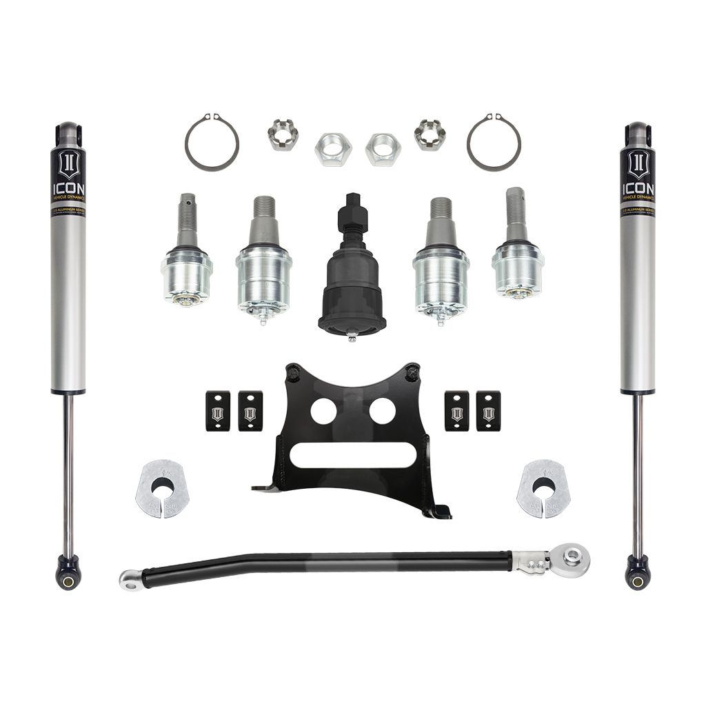The ICON Vehicle Dynamics Ultimate Front End Kits are designed to improve the steering feel, vehicle control, and overall drivability of your vehicle by replacing and upgrading critical worn OE components.