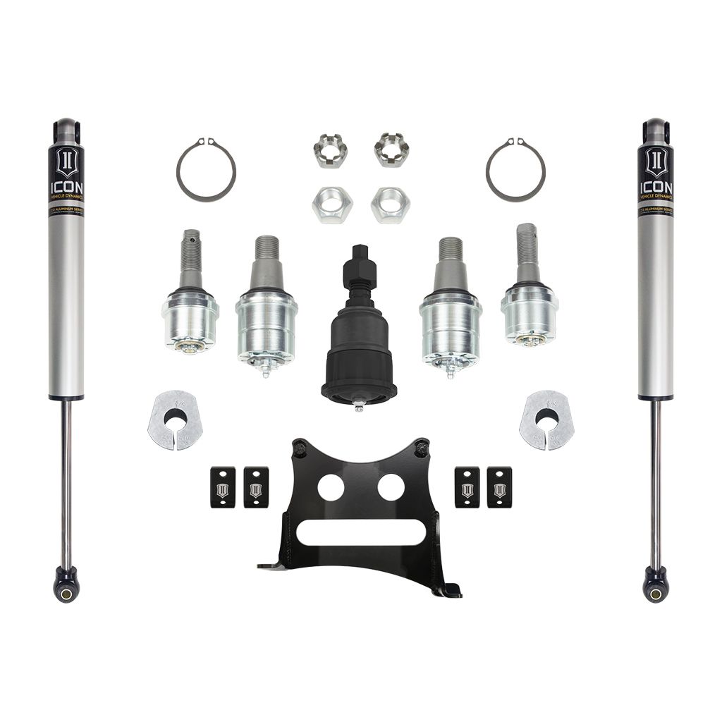 The ICON Vehicle Dynamics Ultimate Front End Kits are designed to improve the steering feel, vehicle control, and overall drivability of your vehicle by replacing and upgrading critical worn OE components.