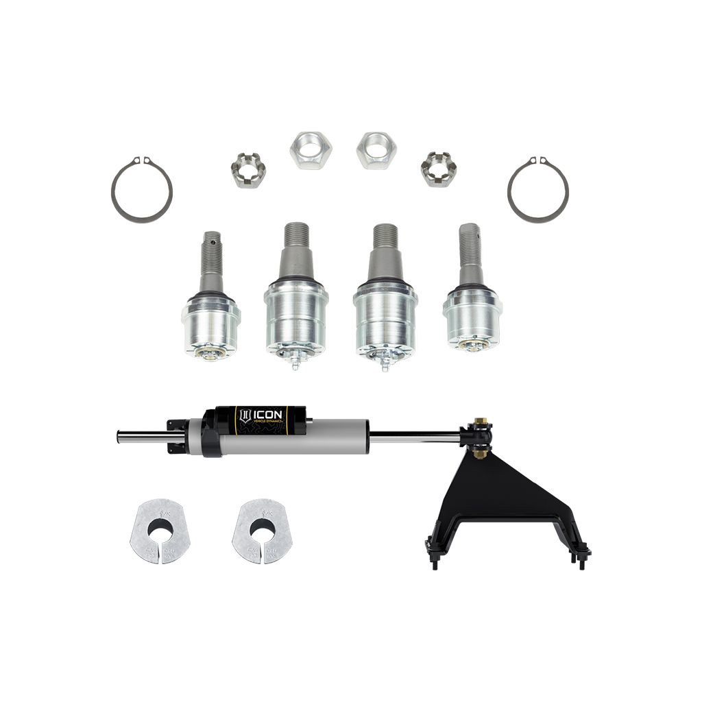 The ICON Vehicle Dynamics Ultimate Front End Kits are designed to improve the steering feel, vehicle control, and overall drivability of your vehicle by replacing and upgrading critical worn OE components.