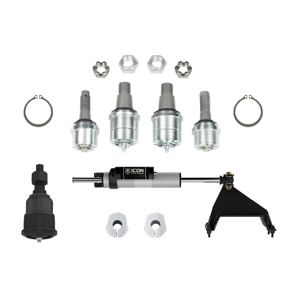 The ICON Vehicle Dynamics Ultimate Front End Kits are designed to improve the steering feel, vehicle control, and overall drivability of your vehicle by replacing and upgrading critical worn OE components.