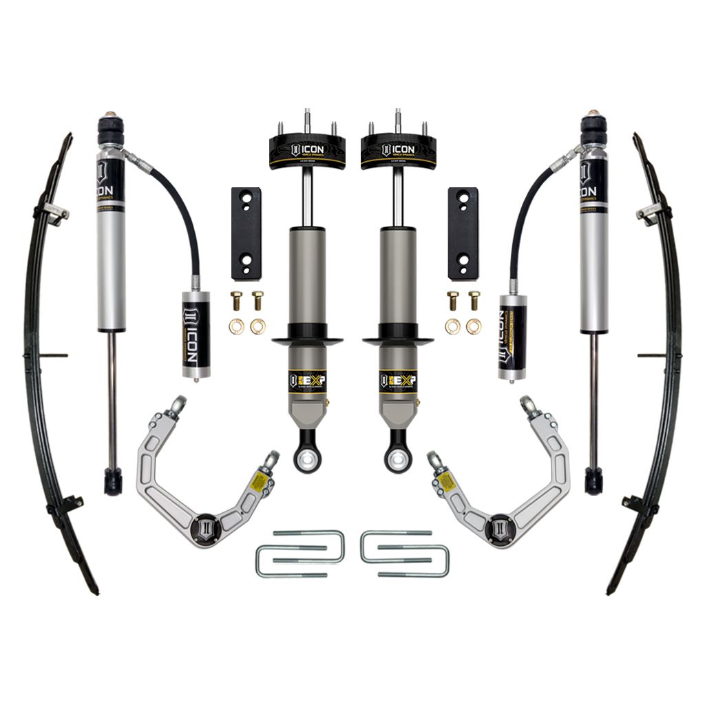 The ICON EXP suspension system for the Toyota Tacoma represents our entry level performance suspension system providing improved on- and off-road performance as well as front-end lift for a proper stance and fitment of up to 33" tires.
